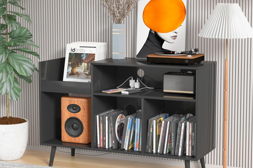 If you’re building a record collection, choose furniture with built-in LP storage for convenience and aesthetic appeal. Purpose-built audio furniture often provides better mechanical stability and vibration control.
