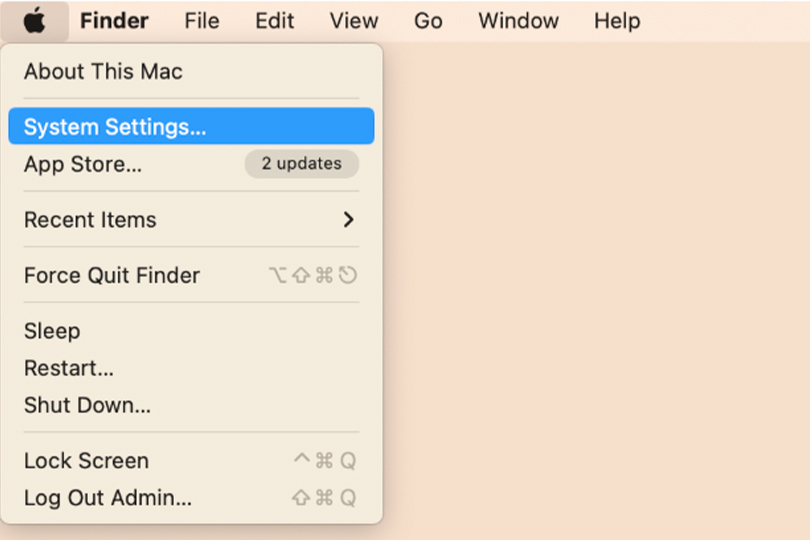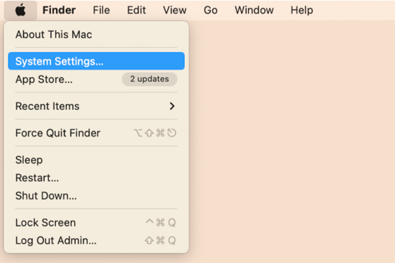 - Select System Settings (called System Preferences in older macOS versions like Monterey and earlier).