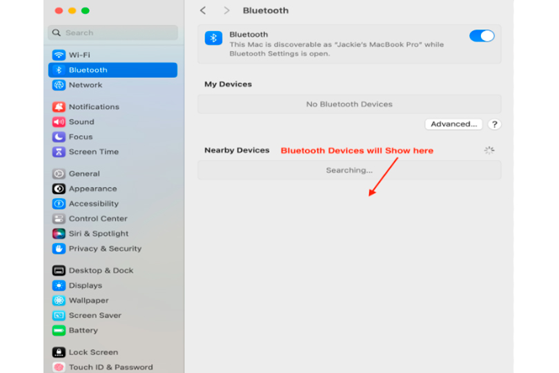 - In the sidebar, go to Bluetooth.