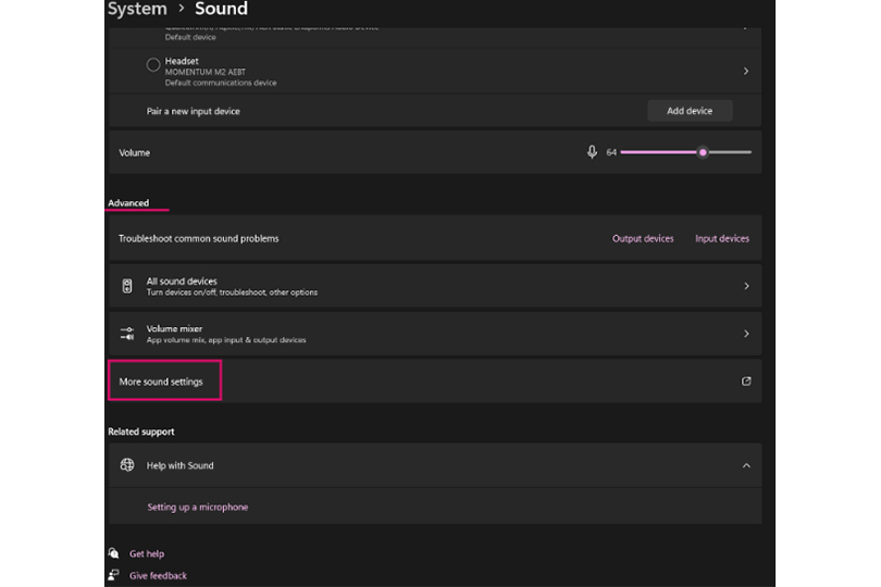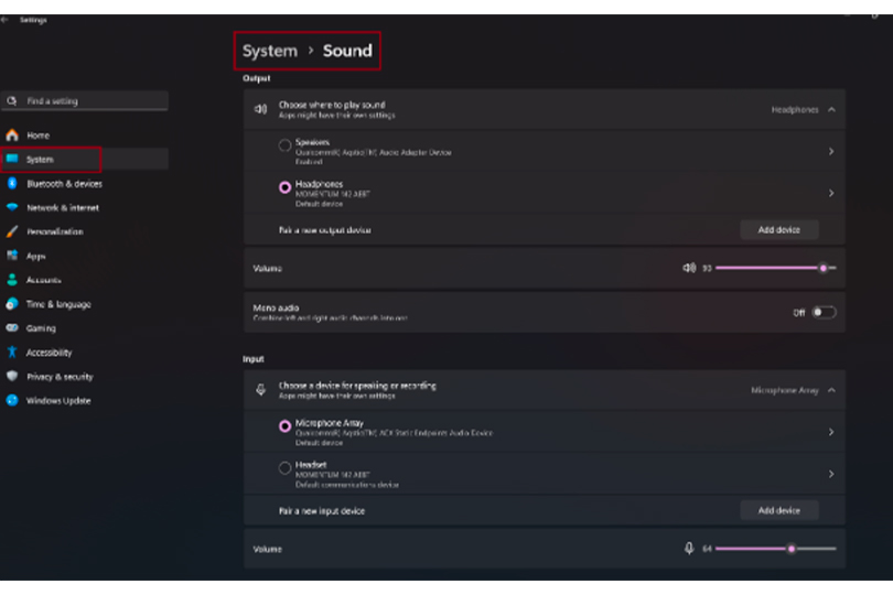 - Go to Start > Settings > System > Sound.