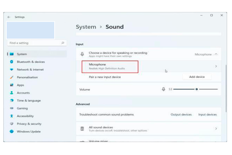 - Open your sound settings to confirm the mic is working. If necessary, manually select it as your preferred input device.