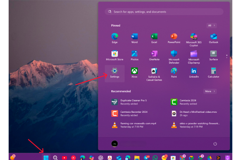 - Go to Start > Settings (gear icon).