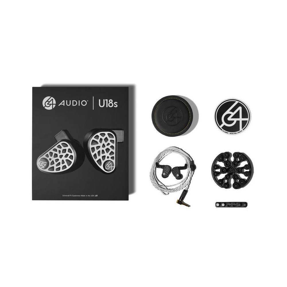 The 64 Audio U18s are in-ear headphones equipped with 18 balanced armatures on each side. The result is live deep bass, transparent mid frequencies, impressive high frequency extension, as well as distinct depth gradation and an expanded soundstage. The modular Apex technology reduces air pressure in the ear canal and delivers flawless sound quality.