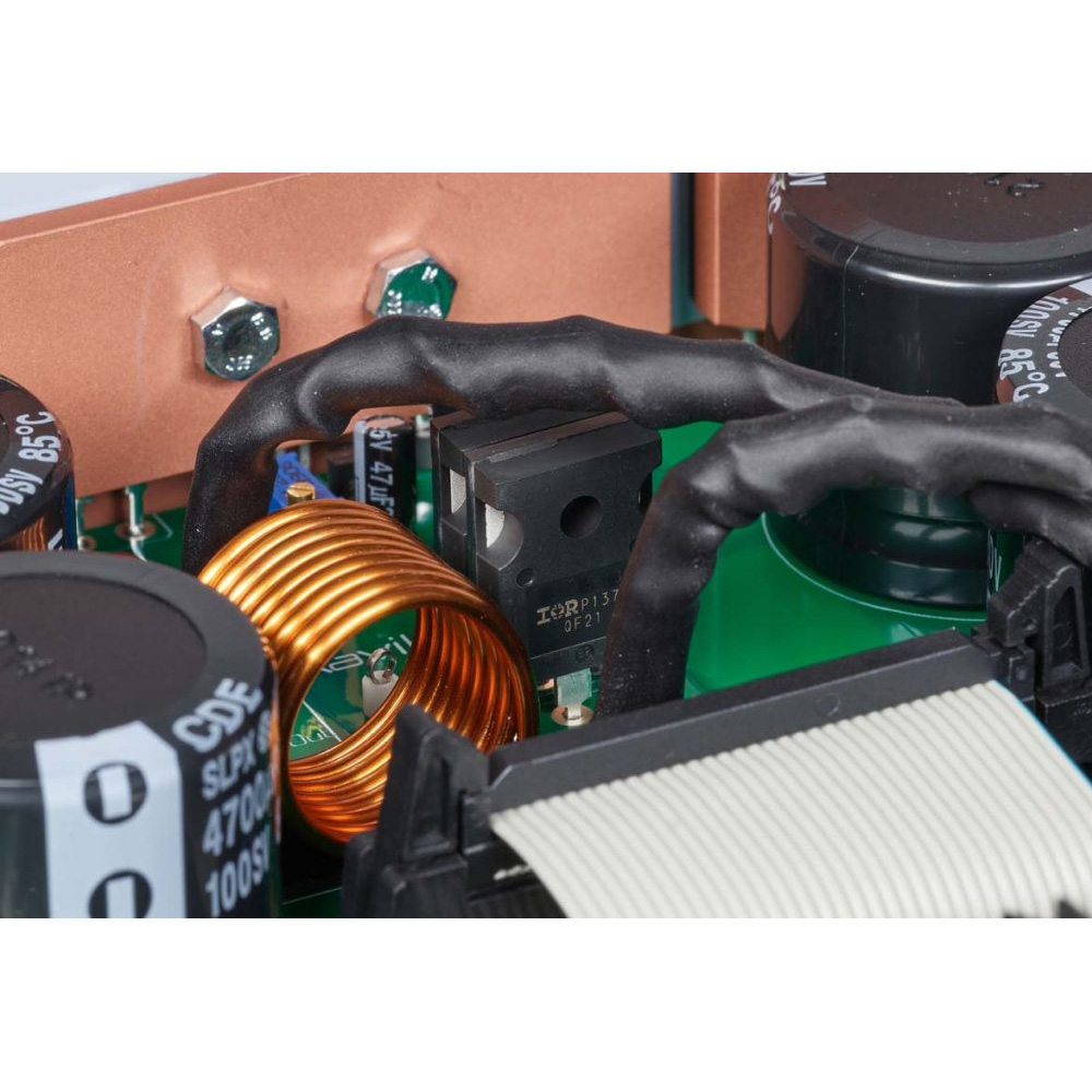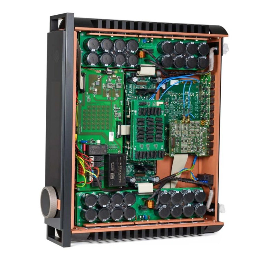 The classic power supply of a class A amplifier is equipped with a powerful power transformer and a bank of capacitors. Aavik engineers developed an innovative scheme that constantly sustains the output cascades in class A, regardless of the power amplifier's required current, significantly reducing energy consumption. This allowed for a reduction in the capacitor bank capacity in the power supply filters and positioning them locally, with each of the eight pairs of output transistors having its own capacitor bank located nearby. This minimizes the length of power lines, reducing noise. Furthermore, this innovative design of the 880 series amplifiers also reduces their heating during operation, resolving a key issue of class A amplifiers.