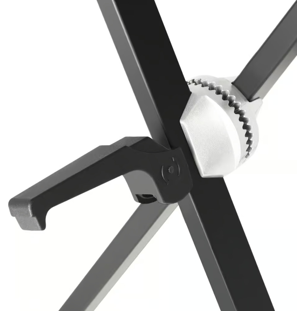 The stand can be adjusted from 600 mm to 1000 mm, making it suitable for players of different heights and playing styles. Thanks to the classic X-frame construction, it folds quickly for storage and transport, taking up minimal space when not in use.