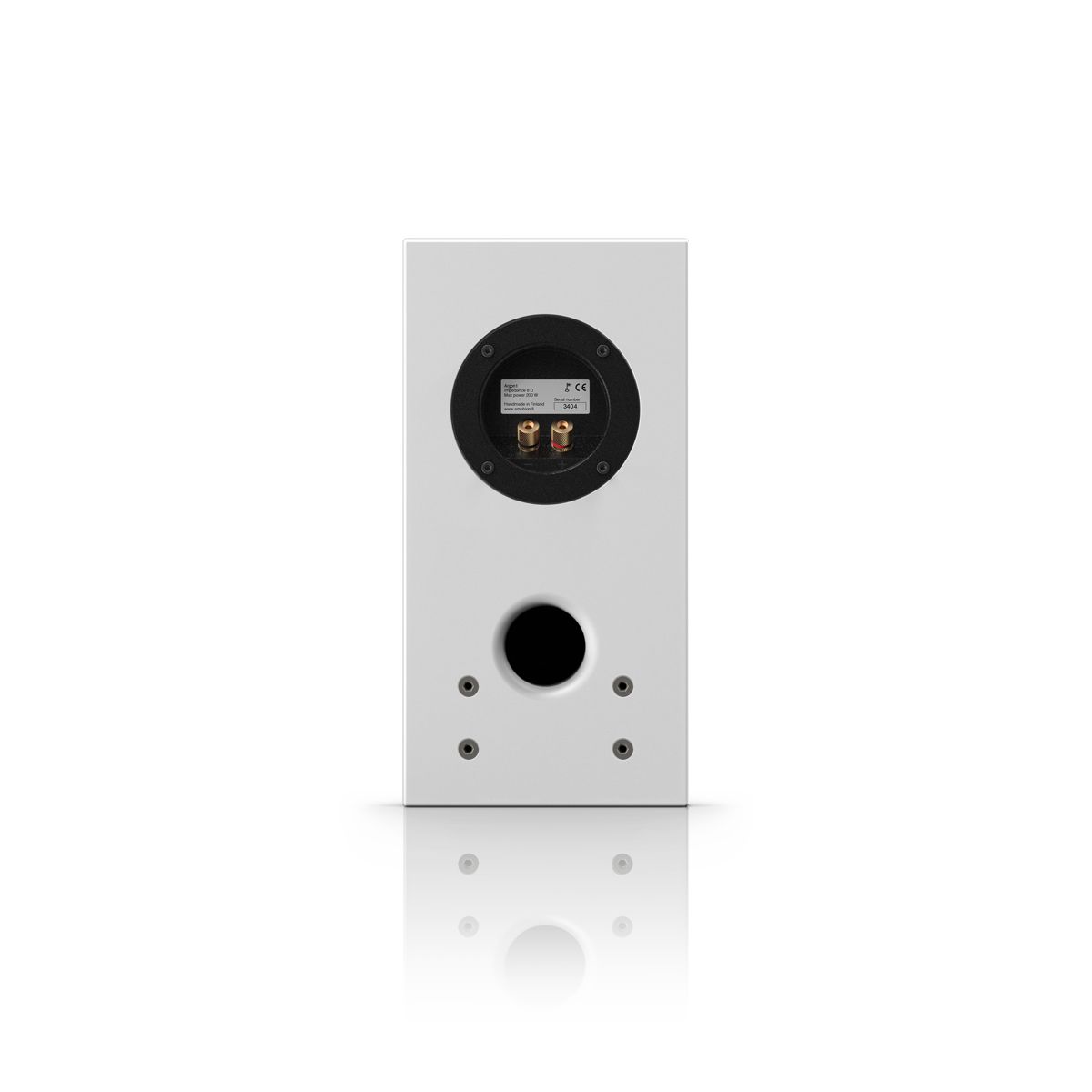 The ventilated Argon1 cabinet houses a pair of drivers with metal cones: a 130mm aluminum mid-range driver paired with a 25mm titanium dome tweeter. The speaker's height is only 31cm, and it boasts an impressive frequency response of 45 Hz - 25 kHz in a compact 8kg body. Back of the cabinet features high-quality screws and special mounting holes for wall installation.