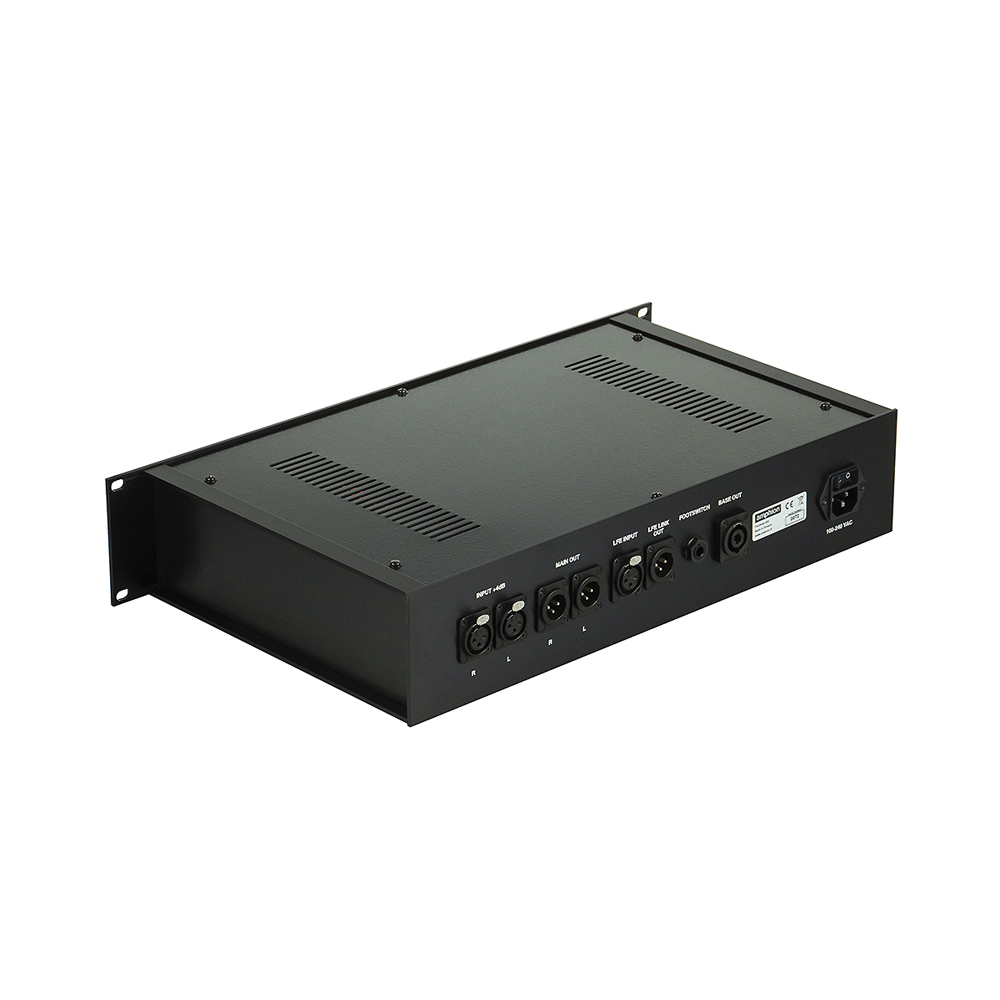 The variable crossover frequency permits adjustments to the system's tone based on the specific production tasks at hand. The mono/stereo adjustment ensures seamless integration of the system, even when using higher crossover points. The amplifier is quick and easy to set up, effortlessly adapting to a wide range of projects and acoustic environments.
