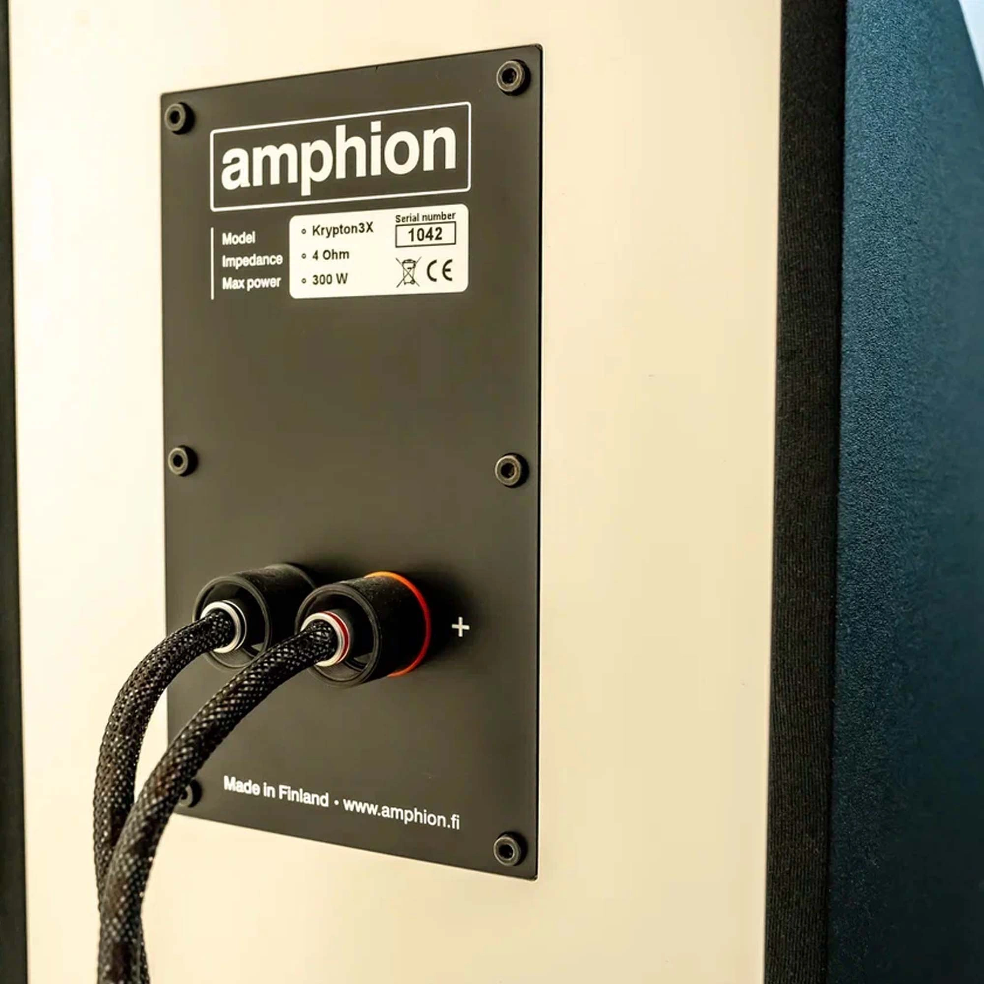 The Amphion Krypton3X is an updated flagship three-way speaker system. The new crossover design and tweeter enhance the full-range characteristics with low distortion levels in any listening environment. It includes the U/D/D (Uniformly Directive Diffusion) technology, which helps the drivers maintain clarity and naturalness while reducing unwanted sound reflections from side and rear walls. All drivers are handmade in Finland from premium materials.