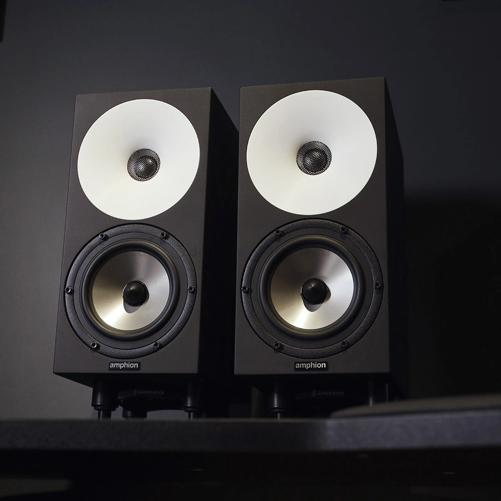 Whether you are a beginner or a professional, if you write music, record, or mix, One15 monitors will help you make the right creative choices. This system will enable you to take the correct steps in final mixing.@@The Amphion One15 studio monitor is equipped with a 25mm titanium dome tweeter in a waveguide made of Corian, an artificial acrylic stone. The tweeter is carefully tuned and aligned with the 150mm woofer, providing incredibly tight and accurate sound for compact near-field monitors.