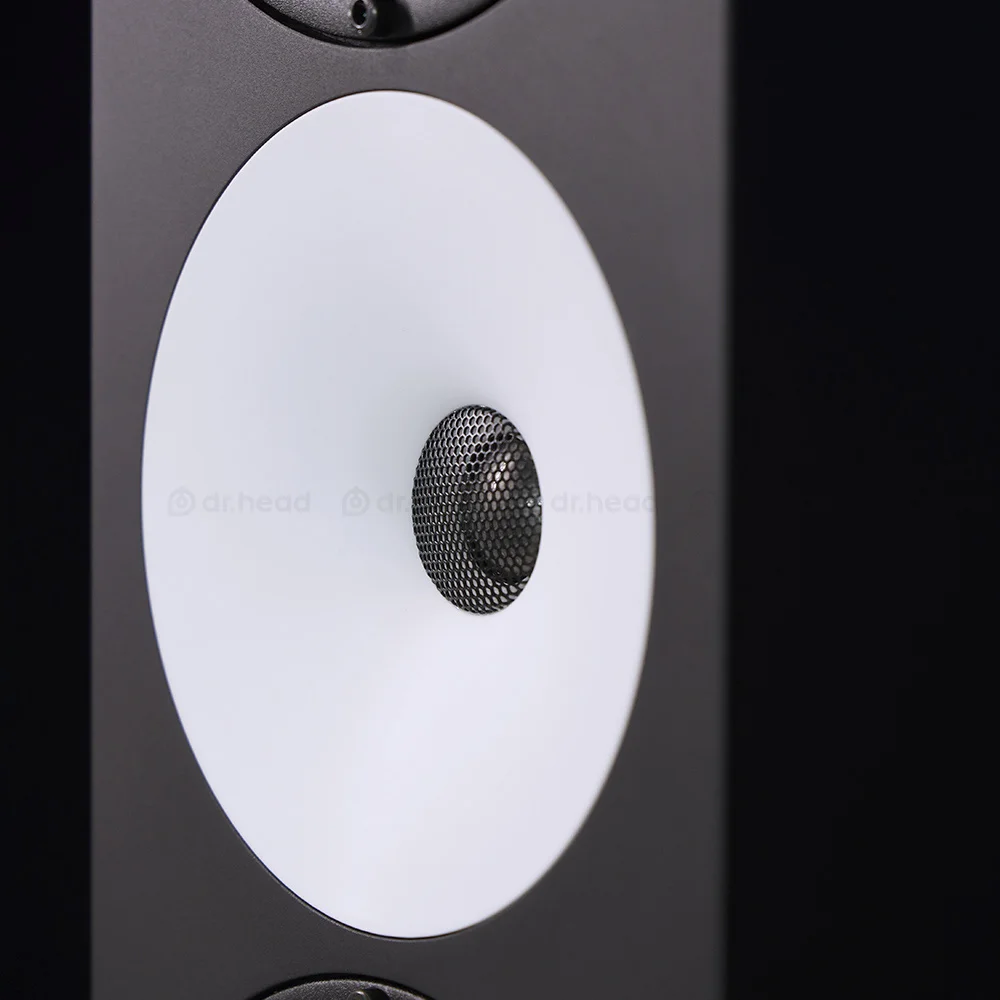 Using a carefully tuned passive radiator on the rear side improves the bass characteristics and energy transfer, loading the room more evenly and naturally. This solution allows for a lower reproduction boundary than a sealed enclosure, but unlike a bass reflex, the passive radiator does not slow down the attack and does not produce turbulent artifacts. The diaphragm of the driver is made of aluminum.