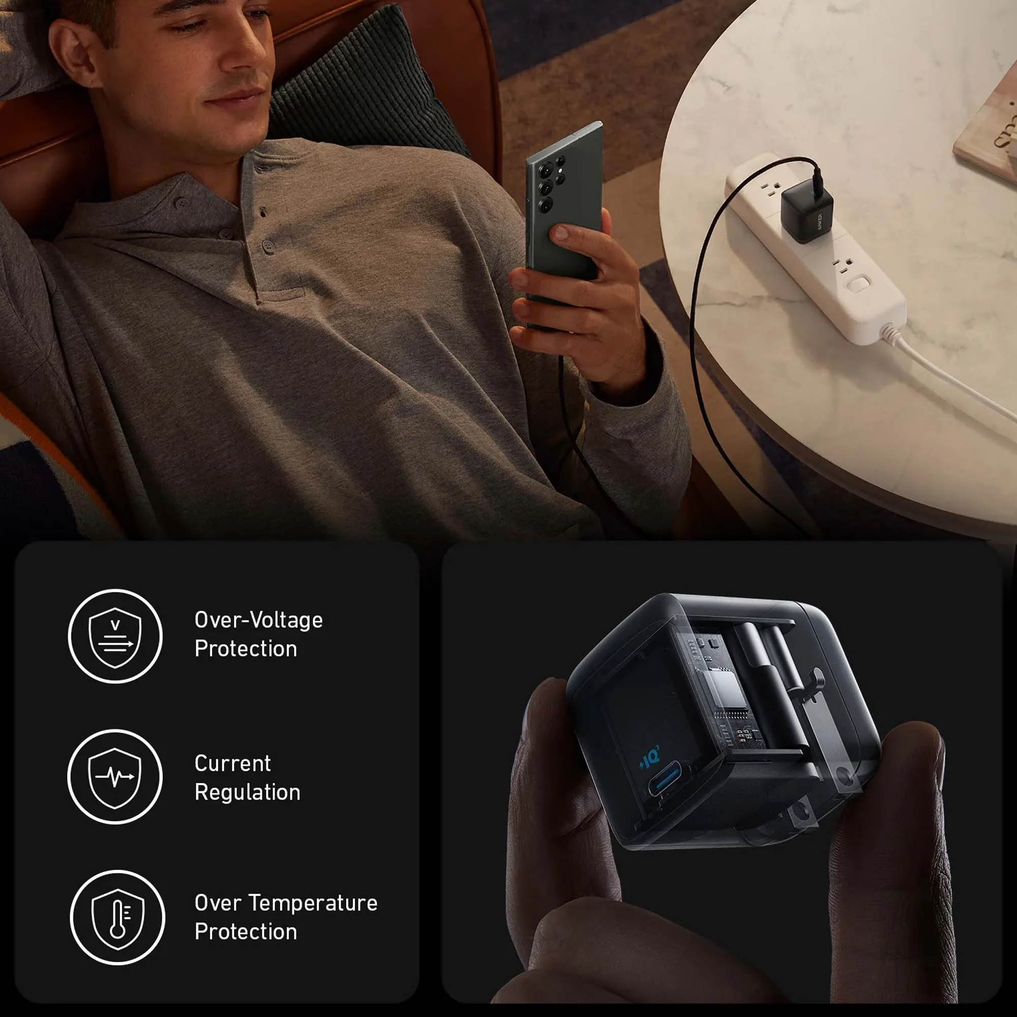 The charger has a foldable design, which makes it compact and portable. You can easily fold it for convenient storage or carry it in your bag or pocket while traveling. The foldable design also helps protect the charger’s prongs when not in use.