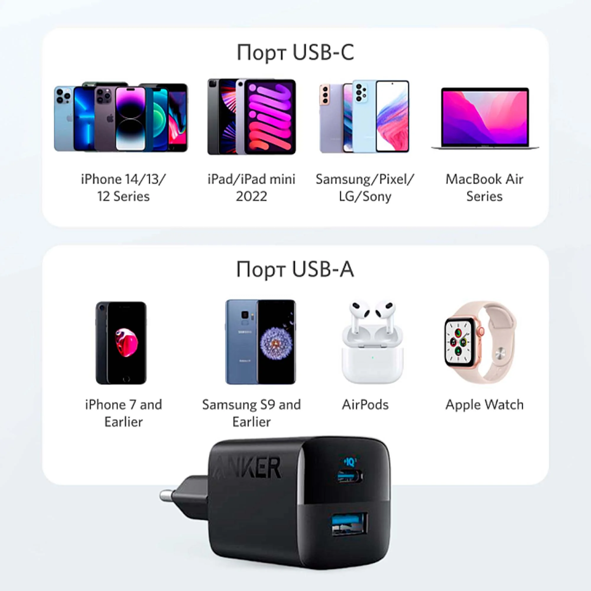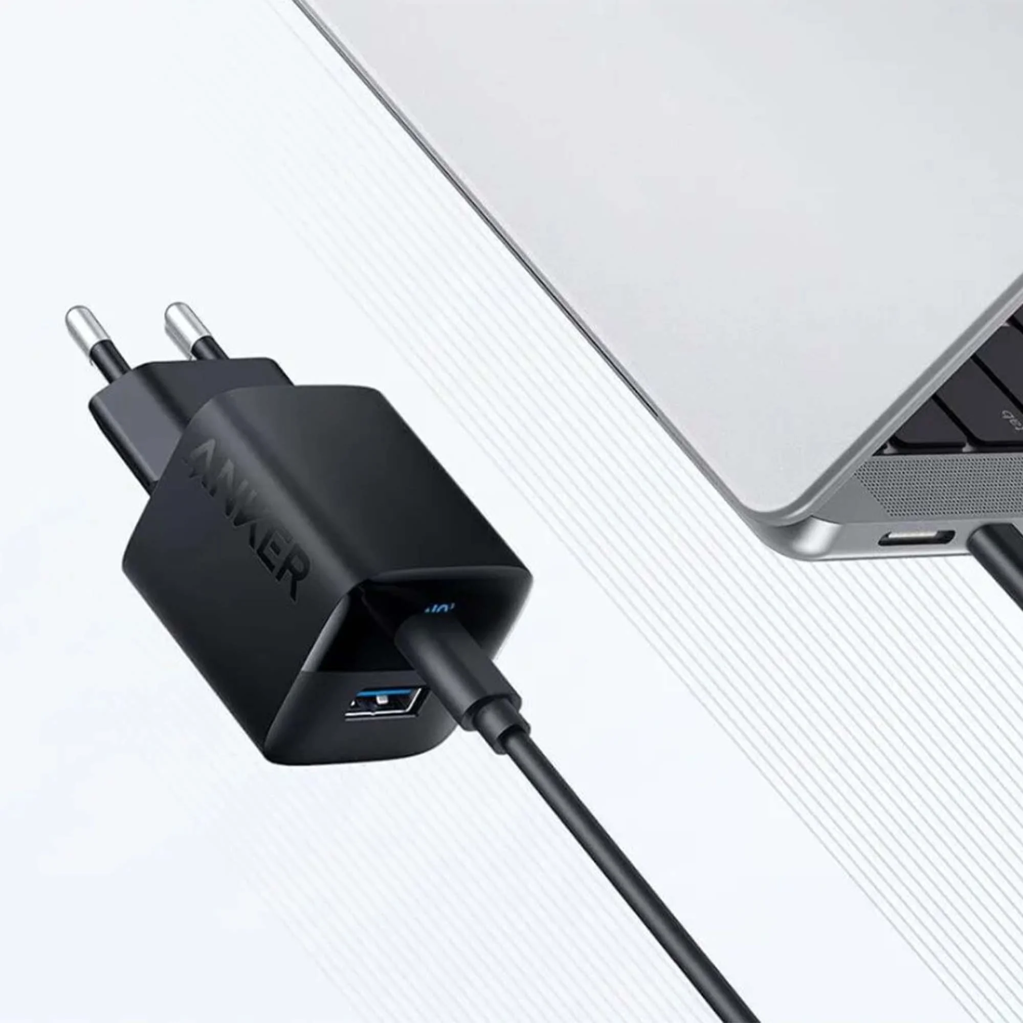 The Anker 323 network charger comes in a classic design with a plug for connecting to a 100-240V outlet. It operates with a stable output voltage of 4.5-20V and a power of 33W.