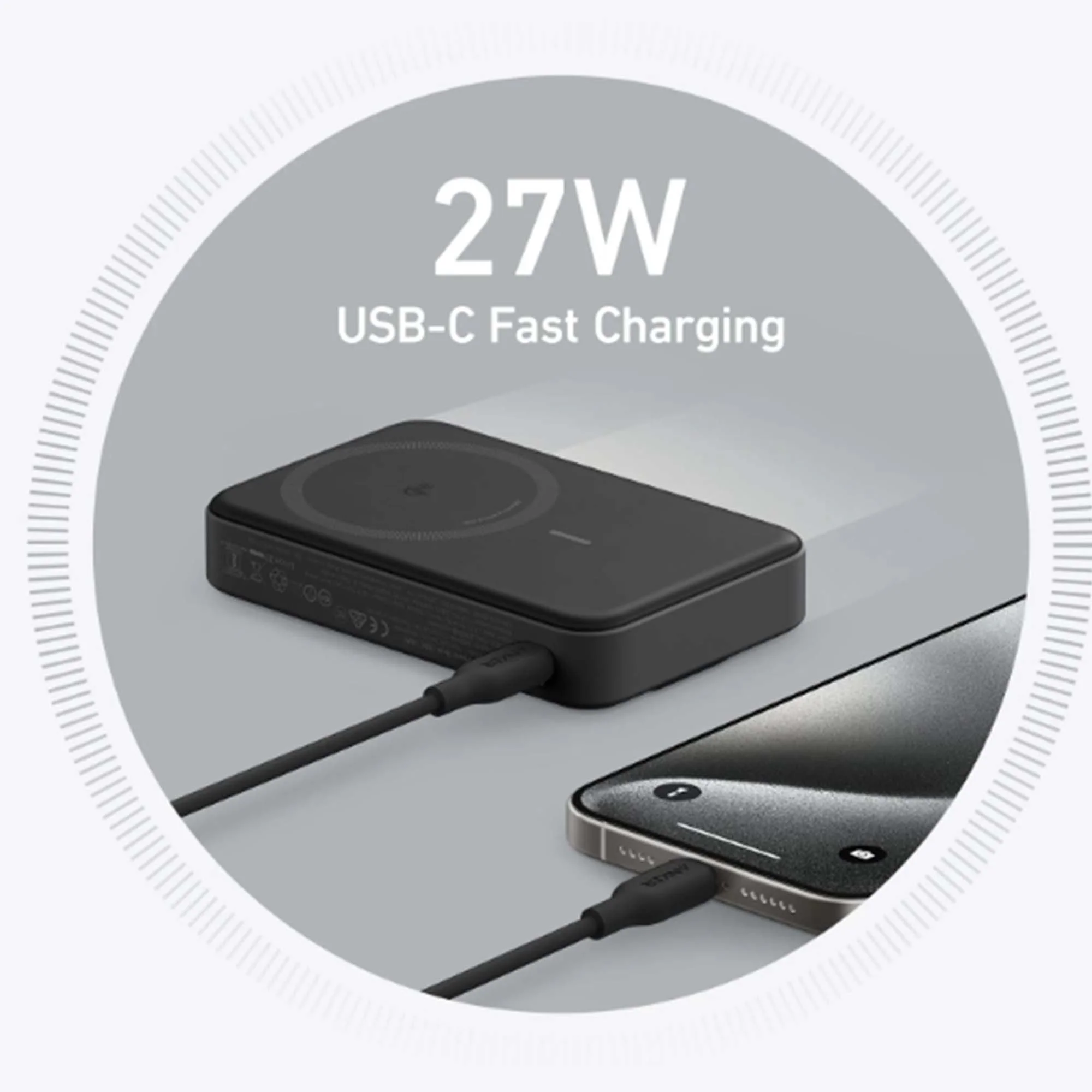 Revolutionary Wireless PowerIQ is powered by a suite of advanced technologies, delivering higher efficiency through a customized Qi2 module crafted from high-conductive aluminum. This ensures consistent 15W ultra-fast charging and exceptional heat dissipation. With 27W USB-C fast charging, your iPhone 15 quickly reaches 60% in just 30 minutes while your trusty power bank recharges, preparing you for whatever's next.