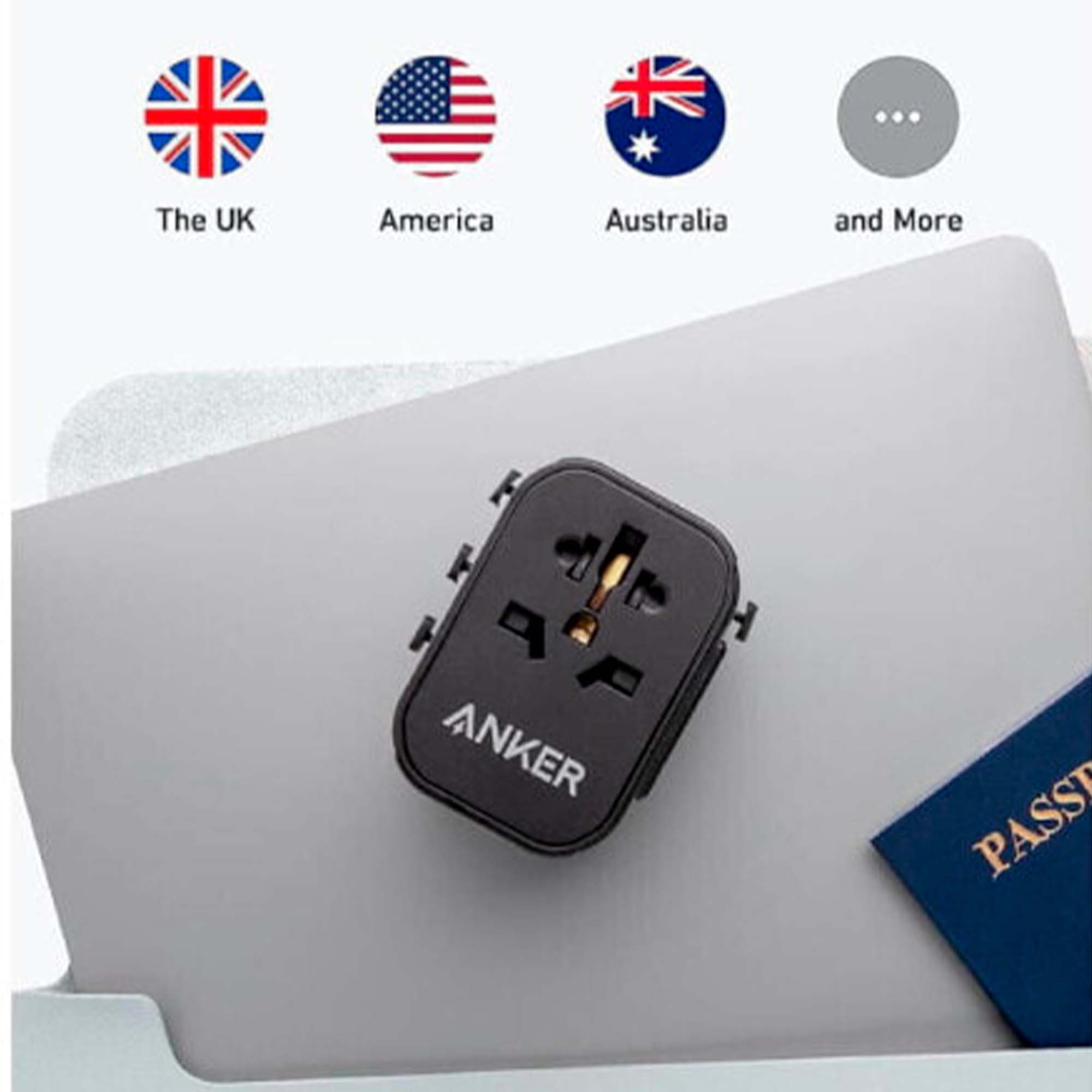 Anker PowerExtend 30W Travel Adapter with USB-C Charger (A9212) - Compact 4-in-1 Multi-Region Plug for Global Travel