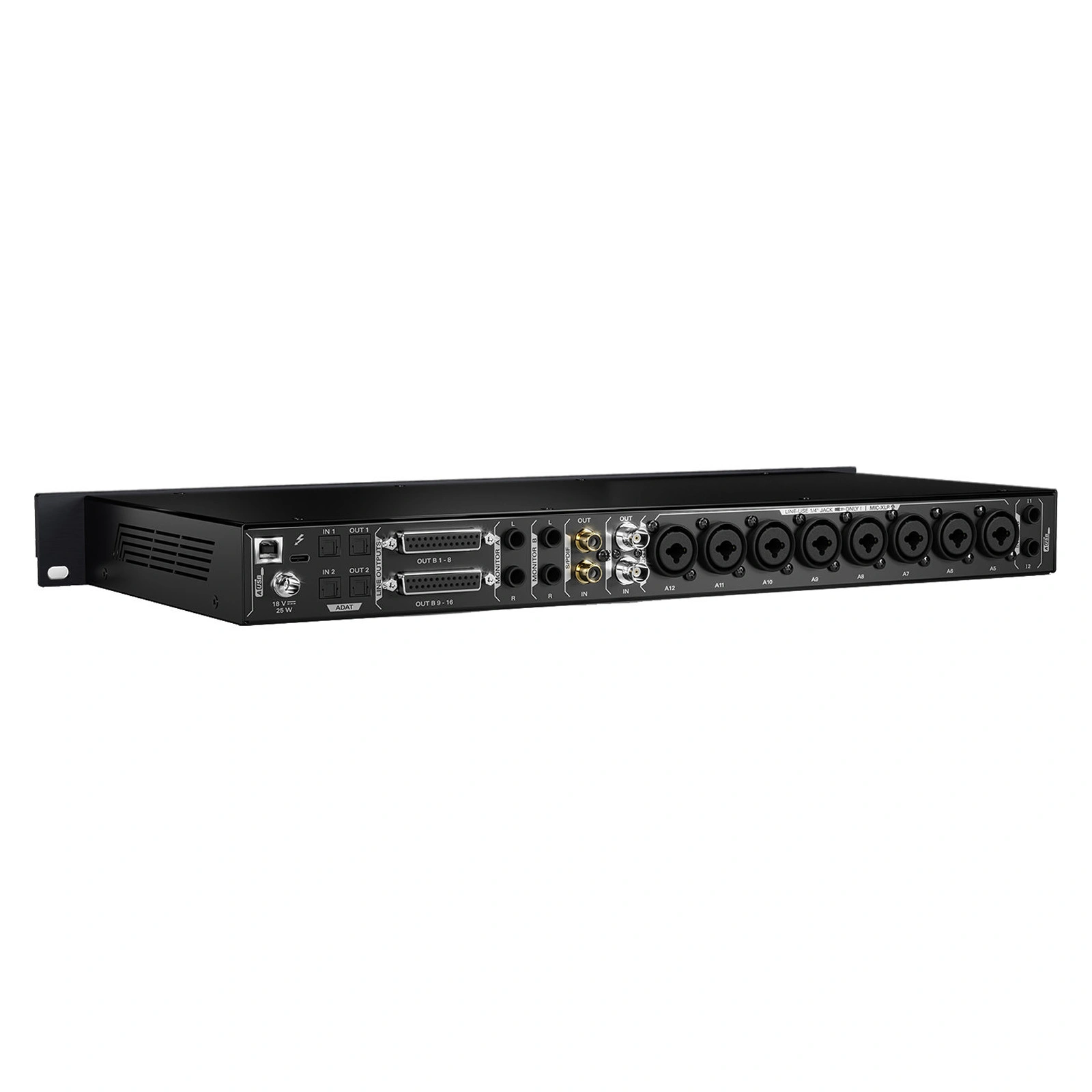 The device features 12 discrete high-quality preamps with up to 75 dB of gain and a dedicated Accusonic 3D engine for working with Edge and Verge microphones, fully unleashing their potential. The interface also includes a built-in Talkback microphone, and all inputs support the Go Direct function, which allows bypassing preamp controls and recording input signals directly to the converters.