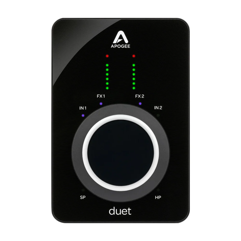 The main rotary encoder remains and now features a bright purple backlight, allowing you to set monitor and headphone levels, as well as adjust the preamp. The Duet 3 combines next-generation Apogee features and functions with a beautifully low-profile design. It also includes built-in hardware DSP for zero-latency recording with FX. The Duet 3 is perfect for music creation, voice recording, streaming, and even gaming. Use it with your Mac or Windows in the studio or on the go.
