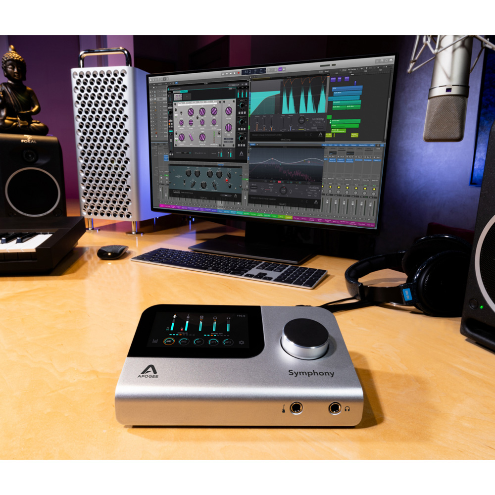 With emulations of vintage British and American mic preamps, DSP/native Apogee FX plug-ins, and multiple zero-latency plug-in workflows, the Symphony Desktop puts you in complete control of your tone. Thanks to its color touchscreen and large control knob, the Symphony Desktop provides easy operation and comprehensive visual feedback.