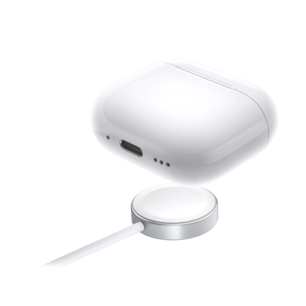 Charge your device in just a few hours with a compact and more efficient case. The compact charging case is over 10% smaller in volume than the previous generation, while maintaining the same charging time. AirPods 4 with active noise cancellation feature a wireless charging case - the smallest in the industry with such a feature - as well as a built-in speaker for Find My, which helps you keep track of them.