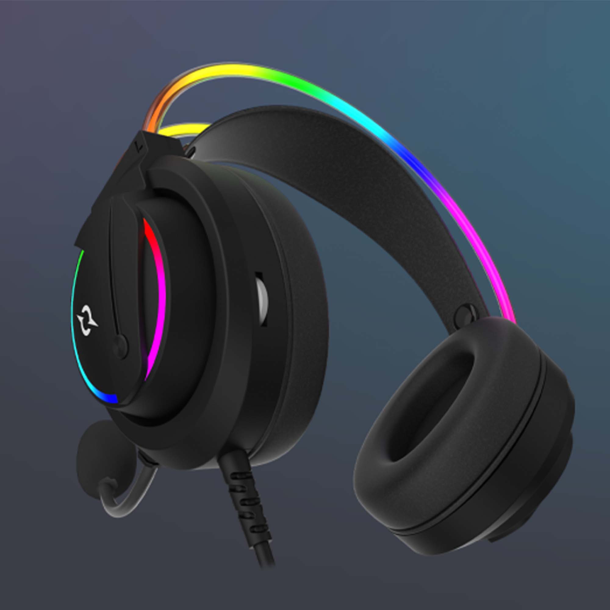 You can rest assured that you will be able to play for hours in absolute comfort thanks to the large and soft artificial leather ear cushions. And our neat symbol with RGB lighting allows you to stylishly match the headset with other devices with lighting.