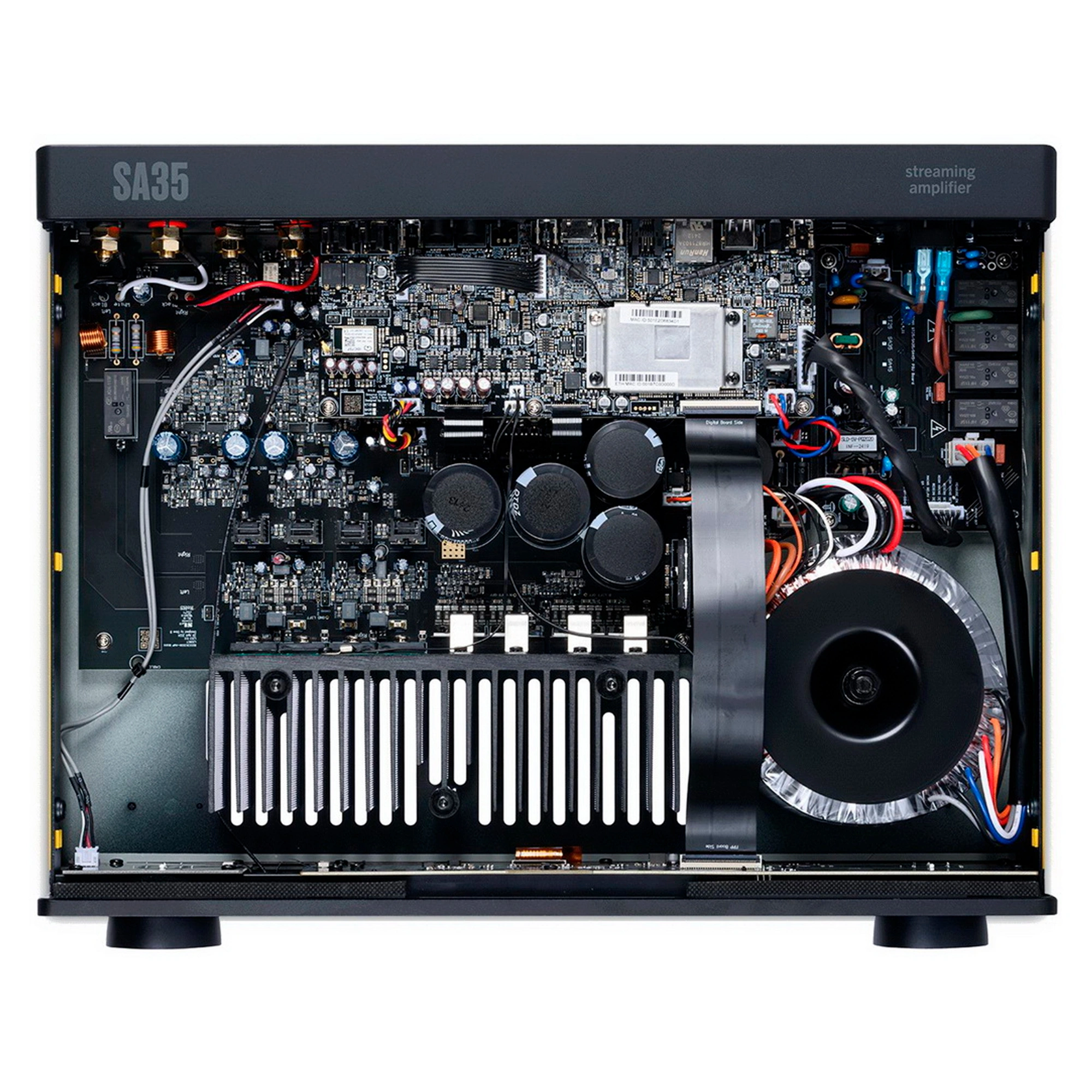 The Arcam SA35 is a versatile streaming system designed for discerning music lovers. It belongs to the new generation of high-class models and features the latest technologies. It includes hard-to-obtain technologies to preserve the most delicate sounds and reproduce music with all its subtleties, nuances, and emotion. Created in Cambridge, UK, it represents more than just a successor to the award-winning Arcam SA30, featuring a completely new digital audio and streaming platform, a new linear toroidal power supply, a new user interface, and a new app.