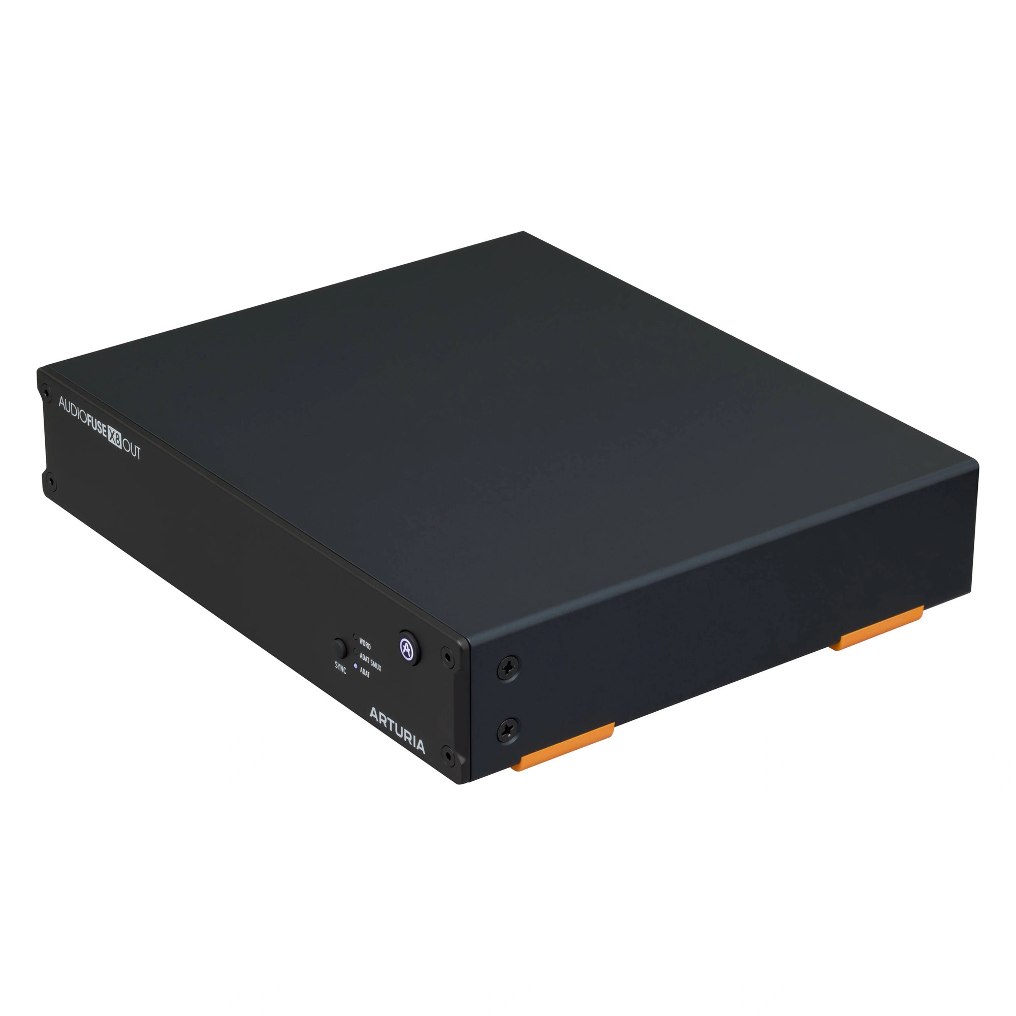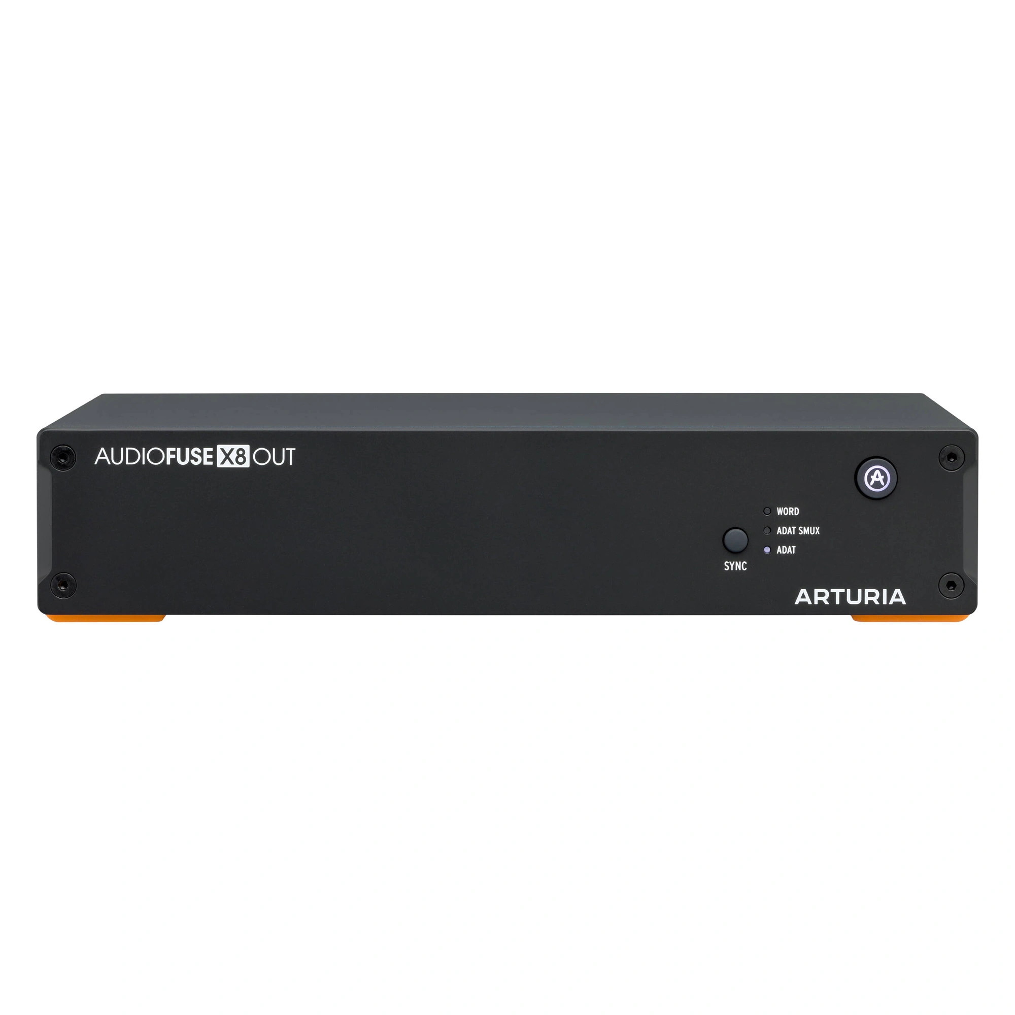 The AudioFuse X8 OUT is equipped with eight matched analog outputs for connecting additional pairs of monitors and external processors. Like the X8 IN, this model has a Word Clock input and Sync button for signal synchronization. It is noted that synchronization operates in three modes - Word, ADAT, ADAT SMUX, with the latter providing "signal conversion of the highest quality."