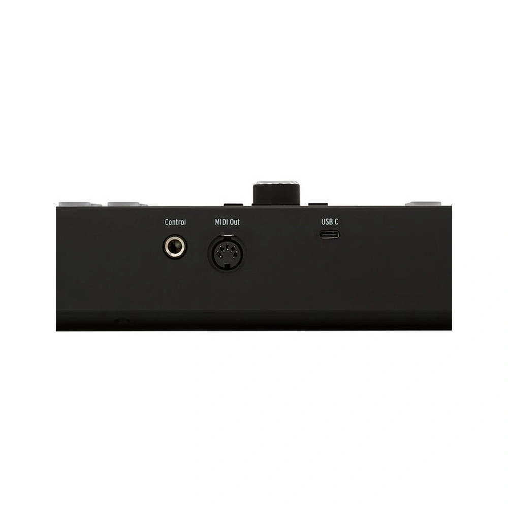 The updated model features a larger 2.5” display with four buttons for easy navigation and an expanded set of parameters, including Scale mode, Chord Play, Arpeggiator with presets, and a Hold function. The MK3 series is equipped with new 8 RGB-backlit pads, and the pedal connector has been improved and now includes modes for Sustain/Footswitch/Expression. Among other connectivity options are a MIDI output and a USB-C port.