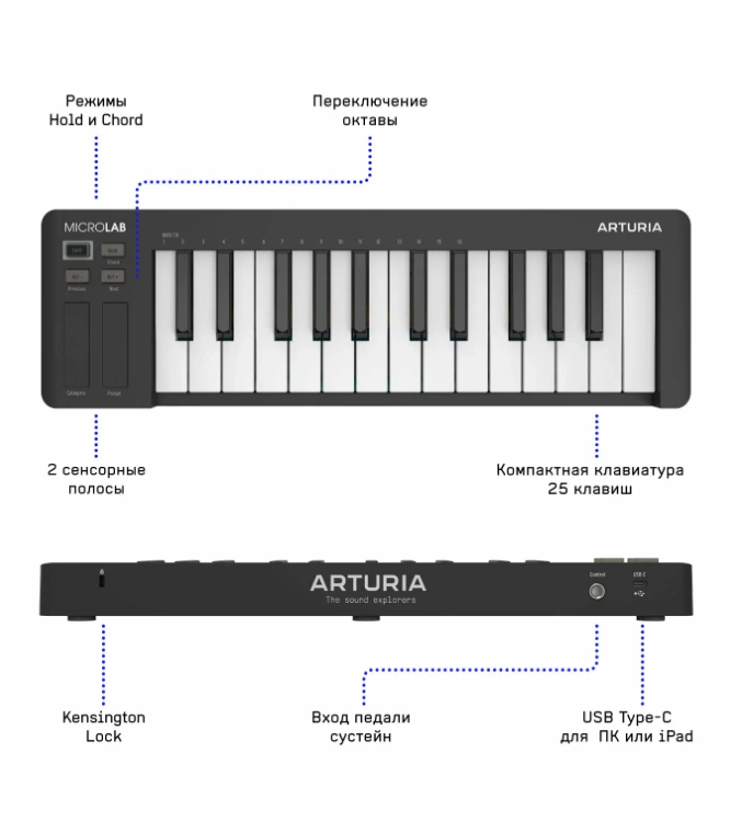 Its small size, excellent keyboard, and intuitive controls make it an ideal choice for producers working in small studios, on-the-go, or just starting their music journey. Its durable, lightweight design and USB connectivity without the need for drivers make the MicroLab mk3 easily integrate into any workflow, giving you the ability to instantly start creating music.