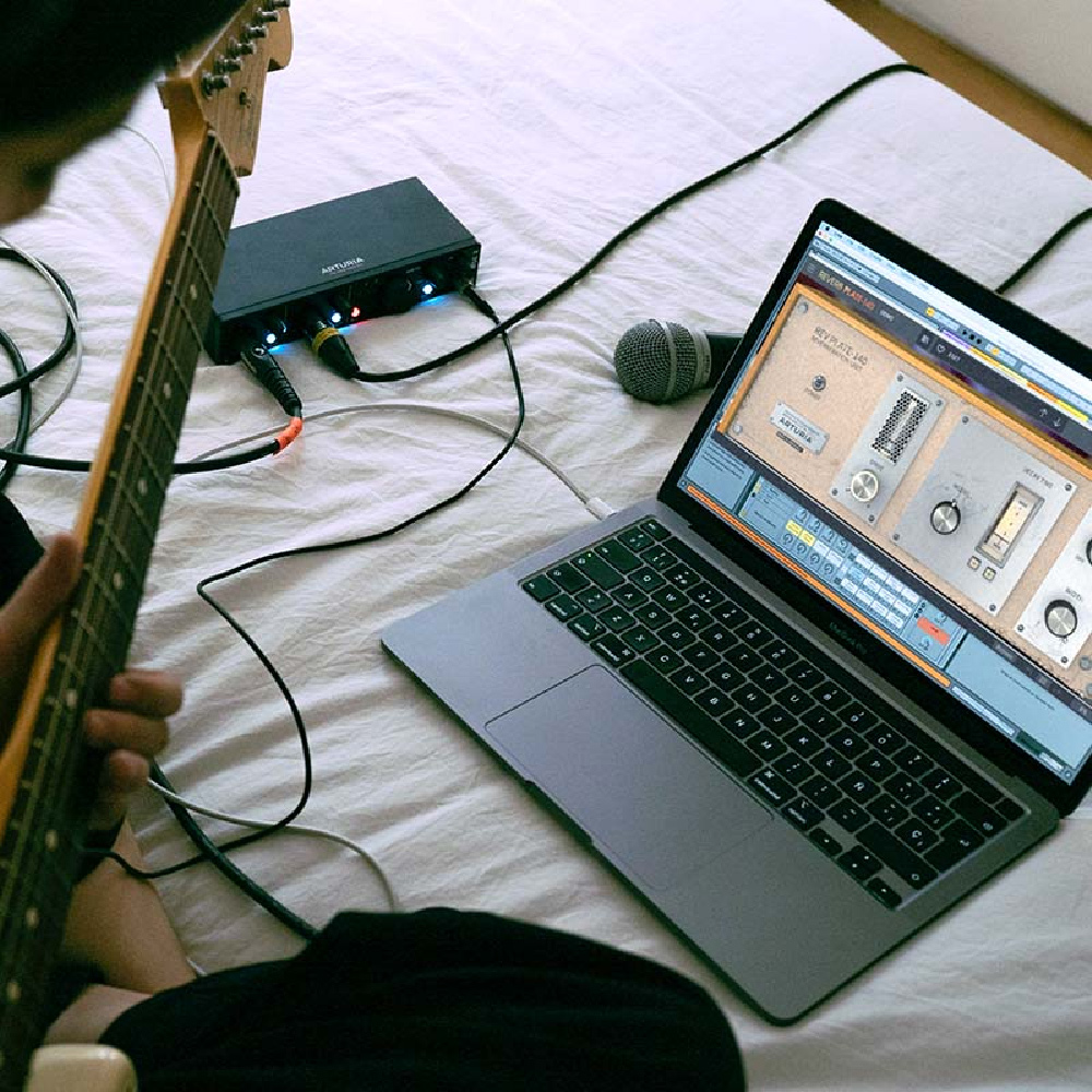 With the MiniFuse Control Center app, you can monitor its inputs, outputs, settings, and firmware updates all in one place. The interface operates via the USB-C bus. It has a virtual feedback channel that is perfect for recording phone calls or game audio. The package also includes software such as Ableton Live Lite, Arturia Analog Lab Intro, Arturia FX, Native Instruments Guitar Rig 6 LE, and a free three-month subscription to Auto-Tune Unlimited and Splice.