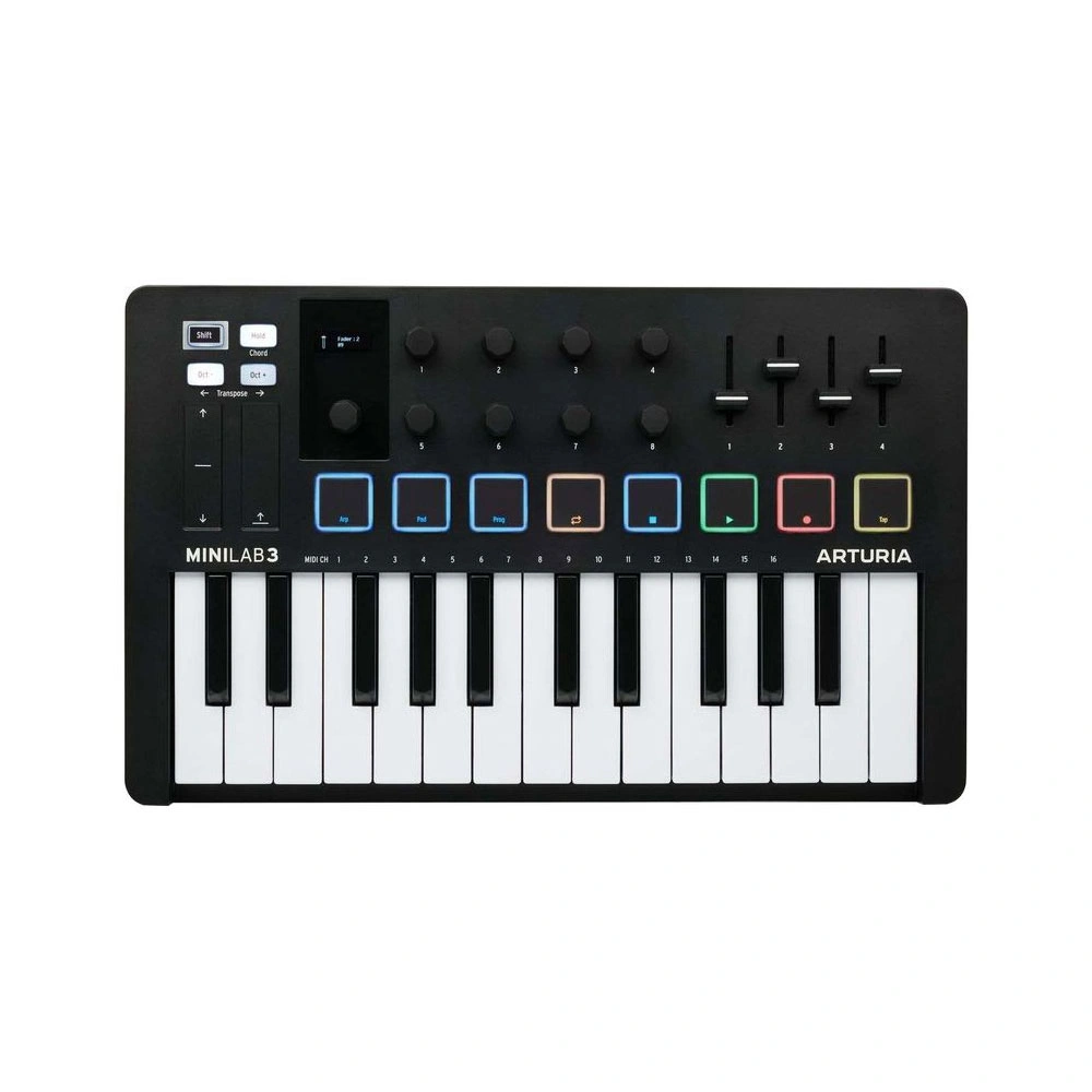 Arturia MiniLab 3 is a MIDI keyboard and pad controller in a compact housing that allows you to start making music right after connecting. Customizable scenarios ensure integration with major DAWs and full compatibility with the Arturia software instrument library. The USB-C connection allows you to connect the MIDI keyboard to a computer or iPad.