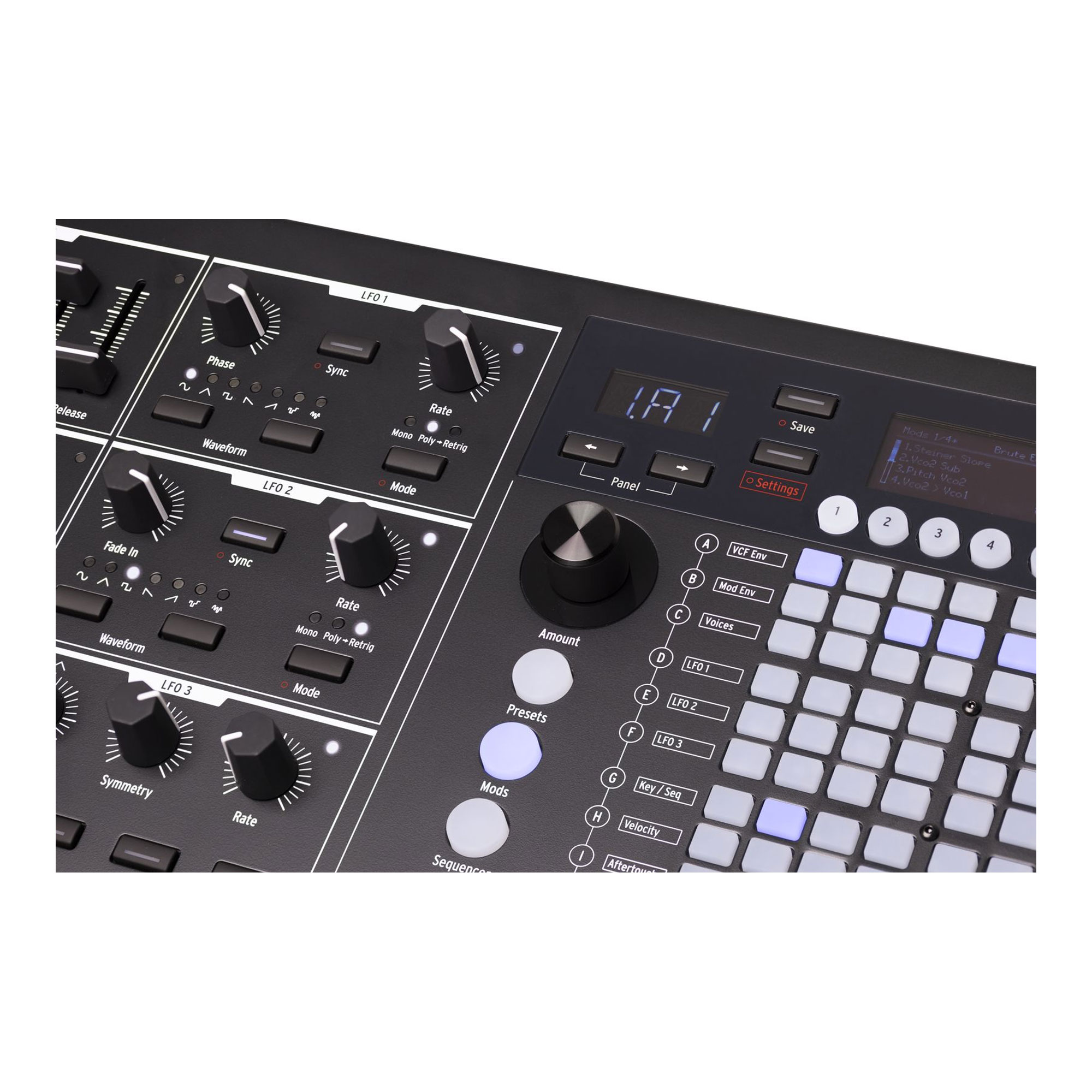 - LFO 3 with variable waveform shape and advanced retrigger options