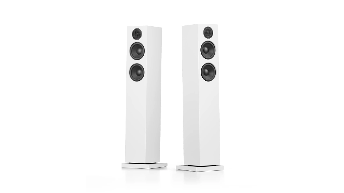 The A38 autonomous active speakers deliver a fantastic sound experience. The large enclosure with dual woofers ensures powerful bass amplification, making them a perfect addition to your living room next to the TV.