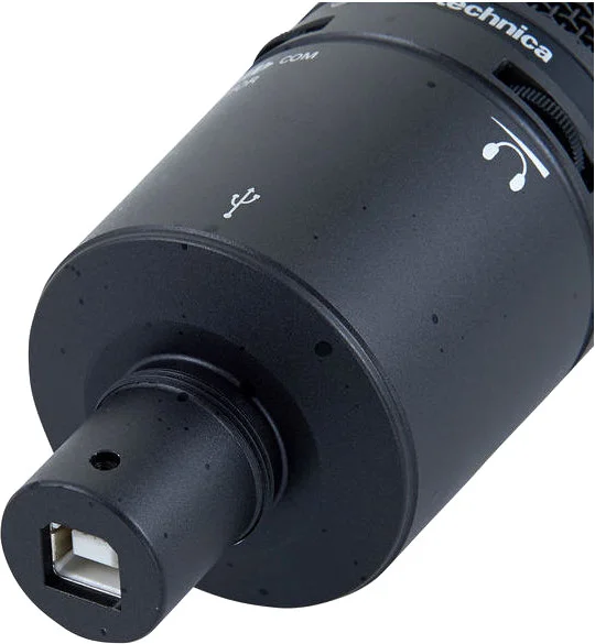The Audio-Technica AT2020USB+ is a studio condenser microphone with a USB connection. This device is designed for digital recording of music, vocals, voice-overs, commentary, etc. both in studios and outside. The AT2020USB+ has a headphone jack, allowing real-time monitoring of the device's signal. The model also features a mix control, which adjusts the input signal and microphone signal. The microphone's cardioid polar pattern effectively eliminates unwanted noises, while the A/D converter ensures accurate sound reproduction.