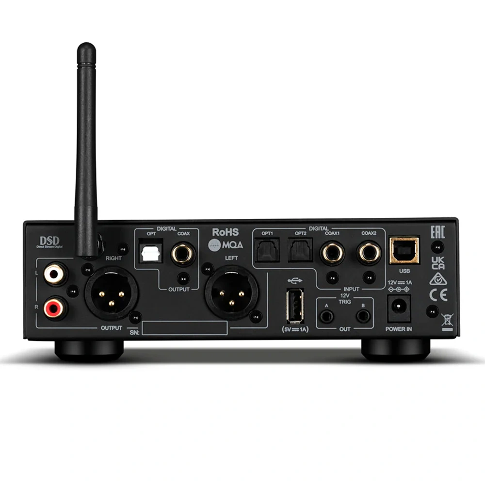 The D7 features four S/PDIF inputs – two coaxial and two optical, a USB input for playback from external flash drives, and a USB type-B input for PC, Mac, smartphones, or tablets. It also has coaxial, optical, or RCA analog outputs and fully balanced XLR outputs, making it a versatile digital audio center. It also features Bluetooth reception with support for multiple codecs, including aptX HD, and Bluetooth 5.1 standard to ensure optimal range and speed.