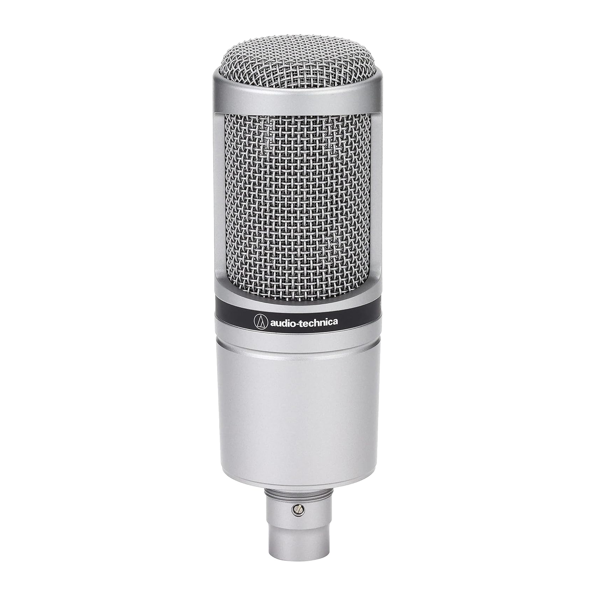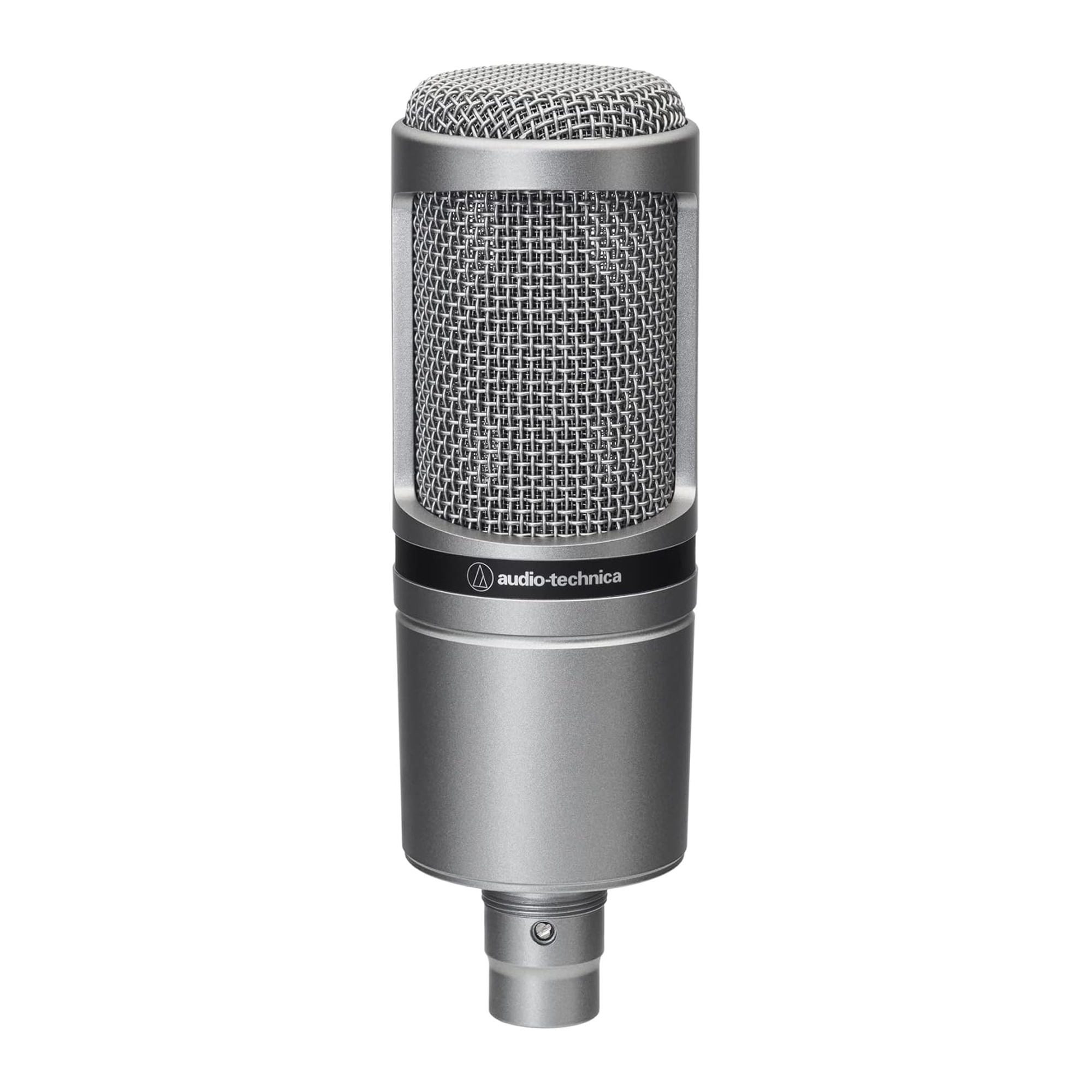 Audio-Technica AT2020 Cardioid Condenser Microphone. The black Audio-Technica AT2020 Cardioid Condenser Microphone is designed to bring sonic performance distilled from the company's reputable studio condensers to the realm of home recording for podcasters, musicians, and content creators. The capsule features a low-mass, side-address diaphragm with a cardioid polar pattern for rejecting ambience and noise behind the mic, a welcome trait when tracking in untreated rooms. It comes with a pivoting stand mount for straightforward attachment to your existing mic stand.