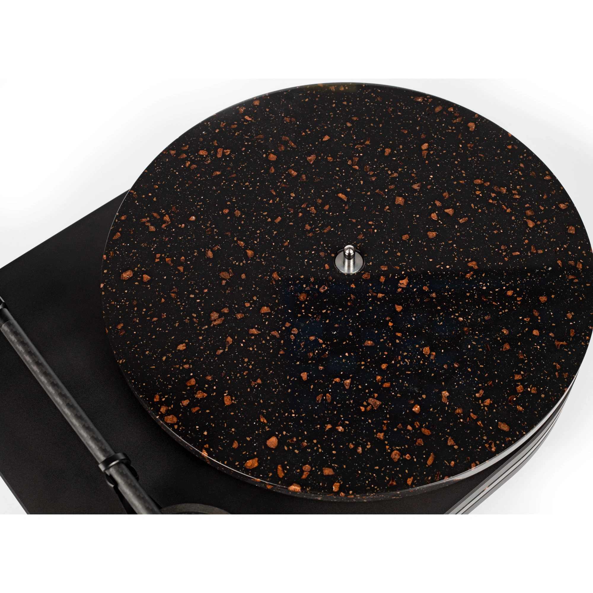 Auris Bayadere 3 is a vinyl player with a 9’’ Terza W9 tonearm. The name "Bayadere" (from the Portuguese word "bailhadera") is a European term that refers to devadasis, dancers from India dressed in vibrant costumes. Inspired by the fabric of devadasis' dresses, Auris Bayadere 3 itself is a musical temple, sturdy and elegant with exceptional design, combining layers of high-quality aluminum and the glossy artificial stone kerrock, reminiscent of colorful stripes of Indian silk.
