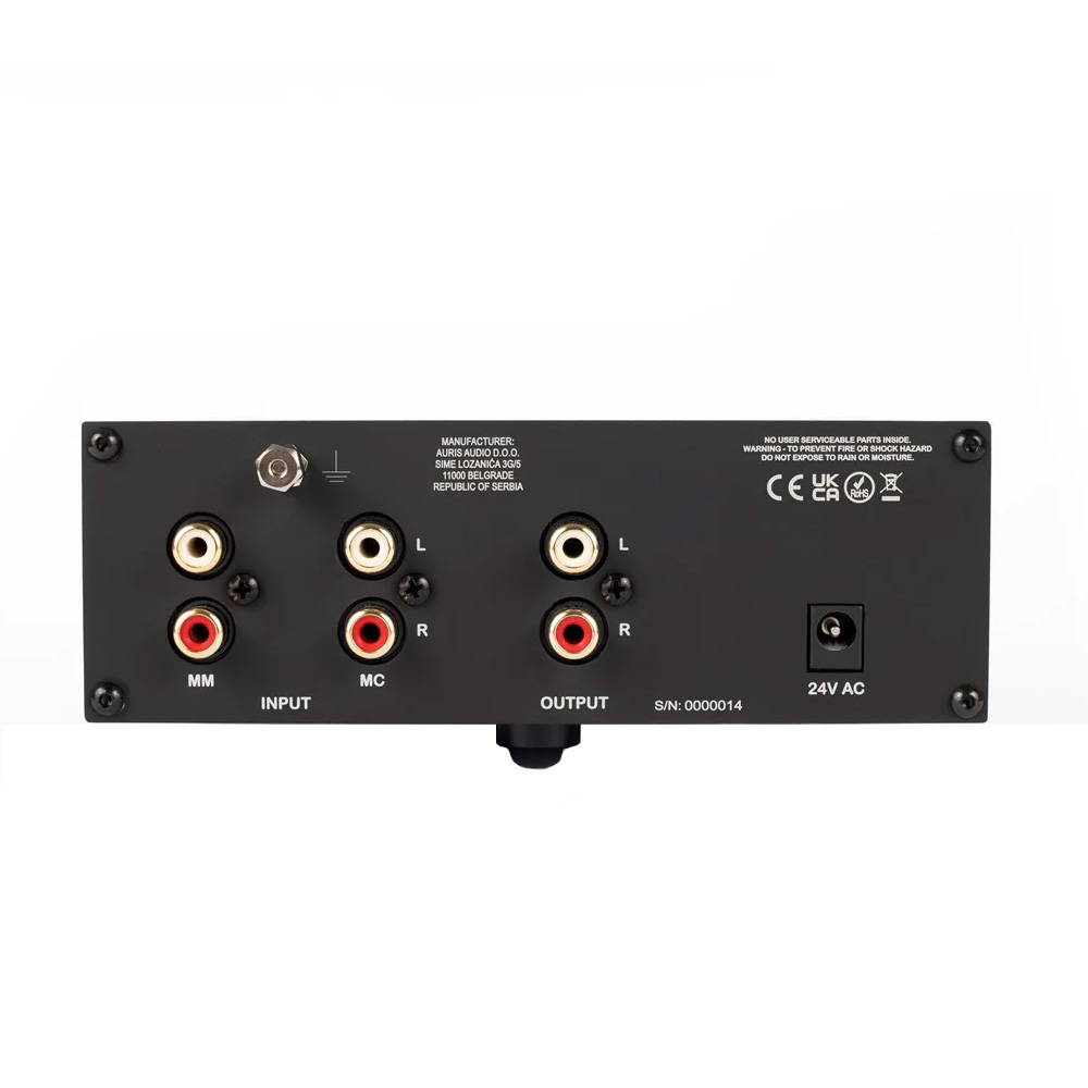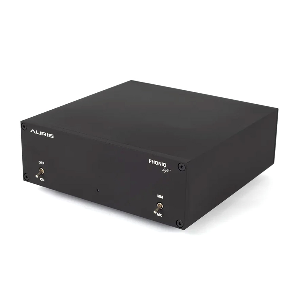 Auris Phone Light is a phono preamplifier for vinyl turntables, which has separate inputs for MM and MC cartridges. The input is selected using switches on the front panel of the device and has one RCA output.
