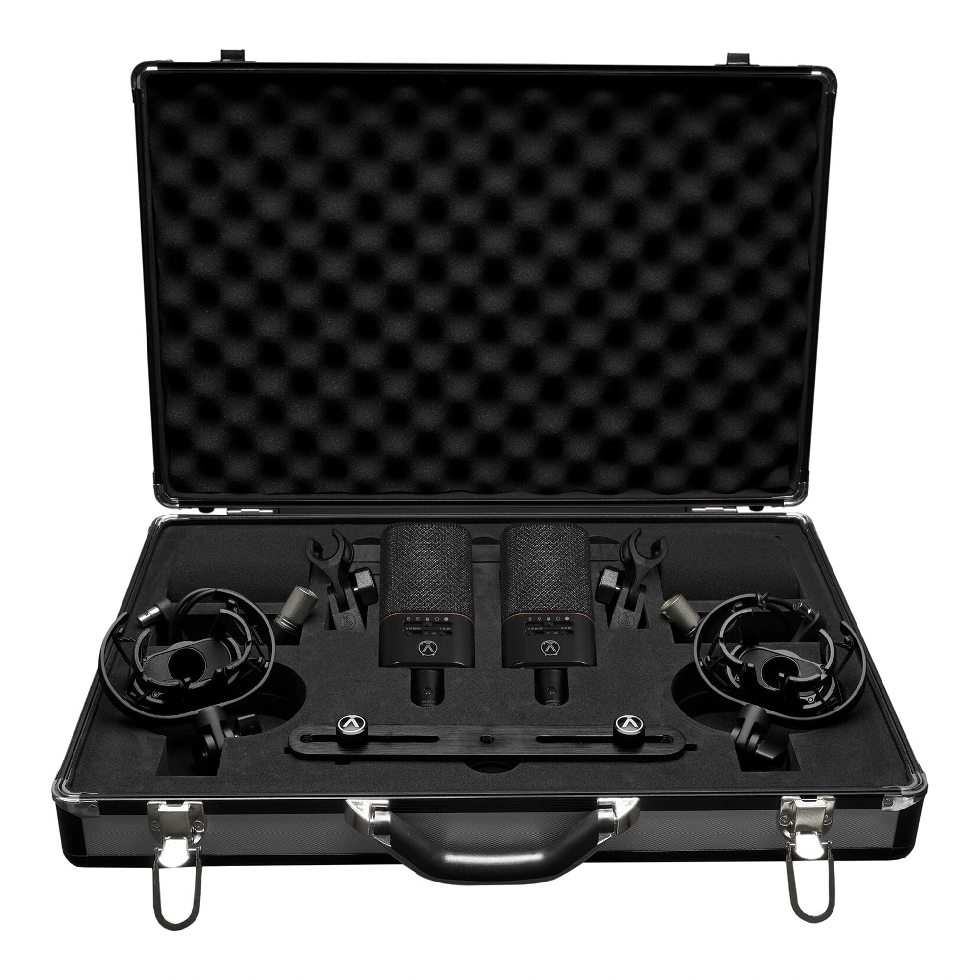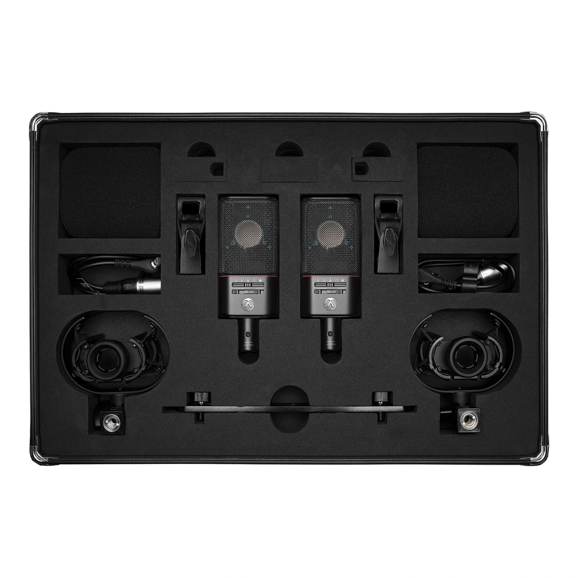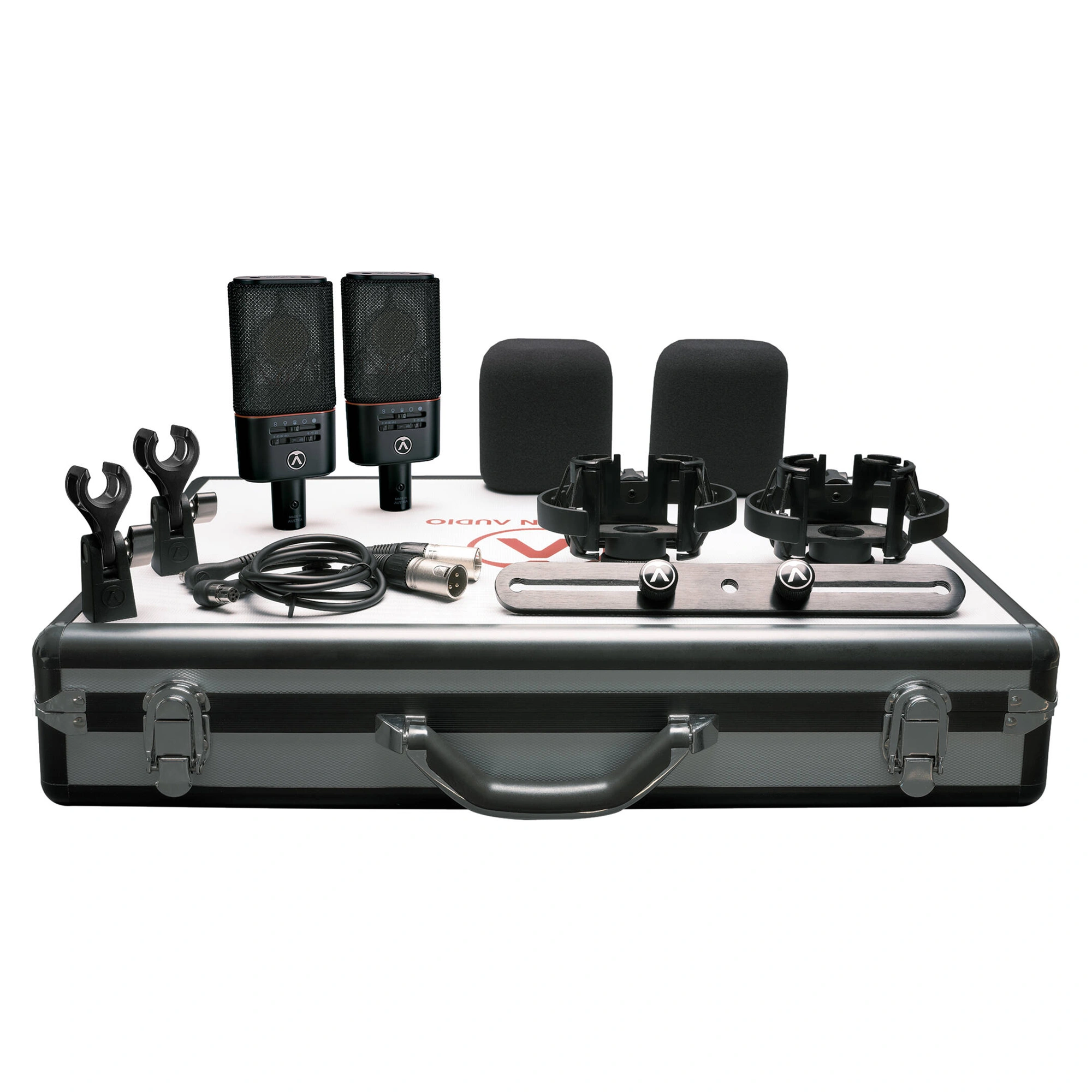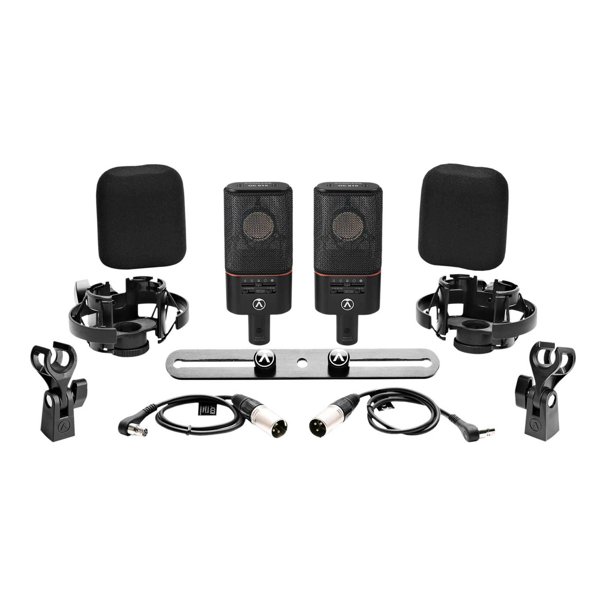 The Austrian Audio OC818 Dual Set Plus is a matched pair of microphones. Developed by a team of former AKG employees, this set of large-diaphragm condenser microphones with multiple patterns includes two studio-quality OC818 large-diaphragm condenser microphones, two traditional microphone clamps, two windshields to reduce breath and air noise, as well as a protective carrying case. Ideal for stereo recording of solo instruments, drum kits, and vocal ensembles, these microphones provide detailed sound capture and extensive sound customization for producers and engineers recording in personal and commercial recording studios.