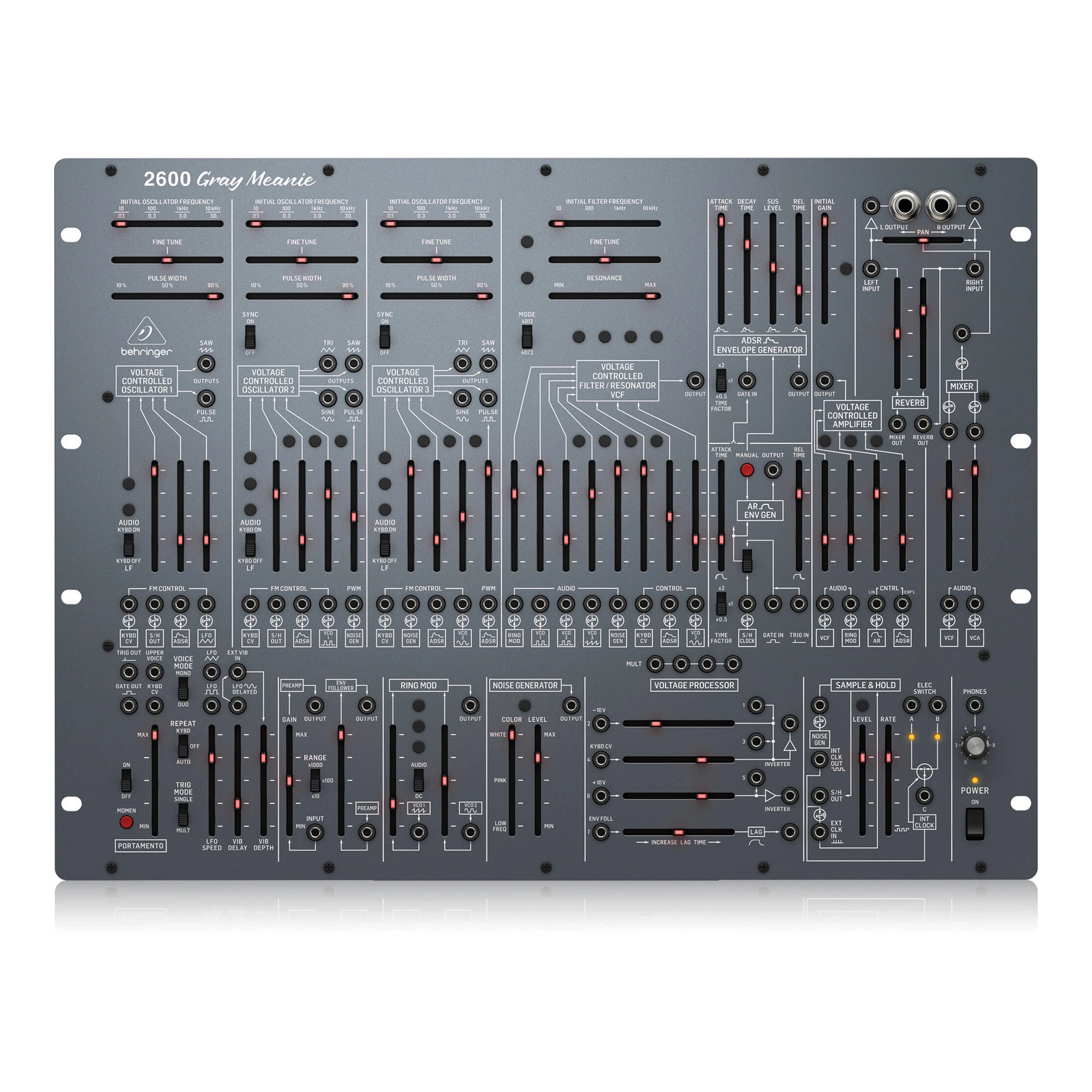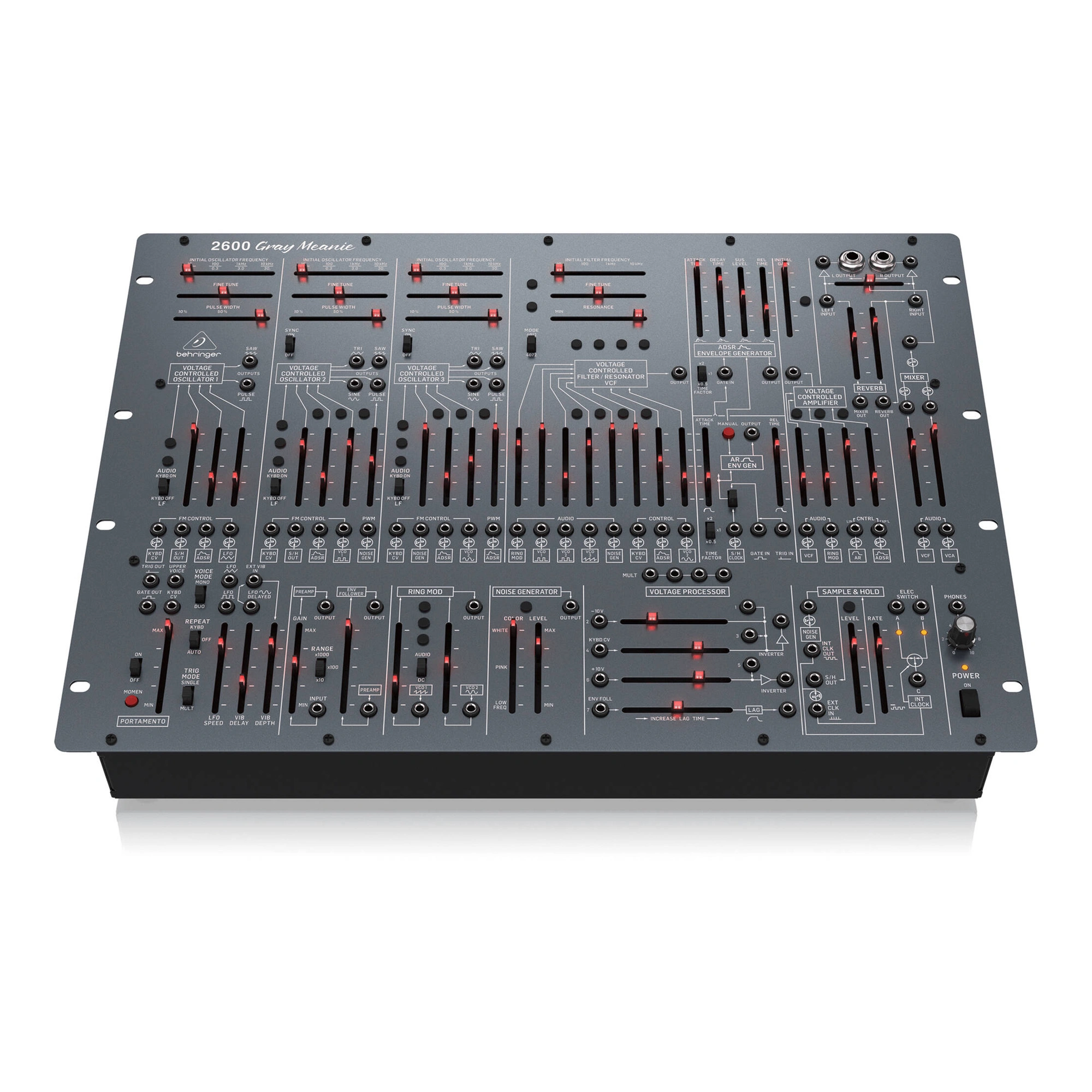 The Behringer 2600 synthesizer is capable of reproducing a wide range of sounds, from powerful bass lines and piercing solos to atmospheric textures, thanks to its purely analog signal path based on the original circuitry.