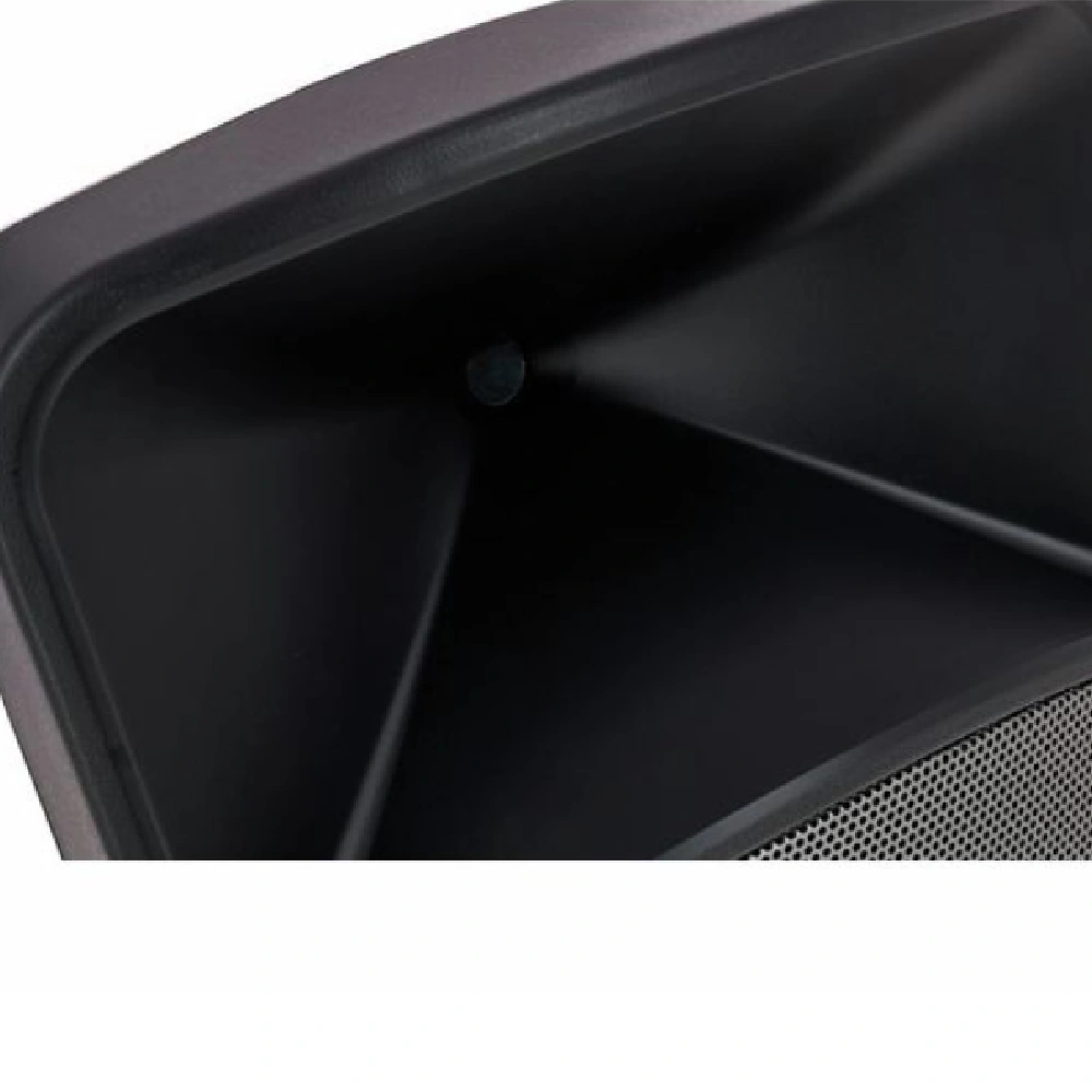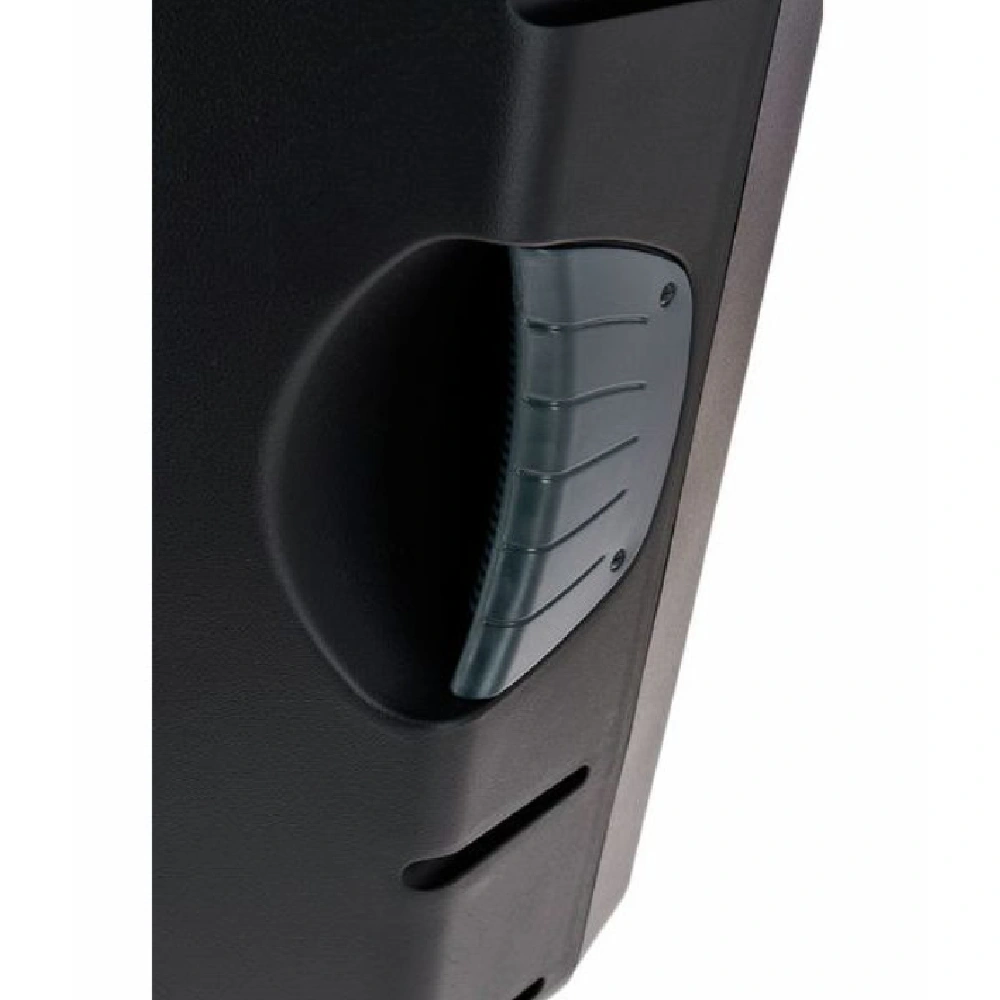 The housing is made of impact-resistant plastic that is resistant to vibrations and mechanical impacts. Ergonomic handles on the sides make transportation easier. The versatile trapezoidal shape allows the system to be used both vertically and as a stage monitor.