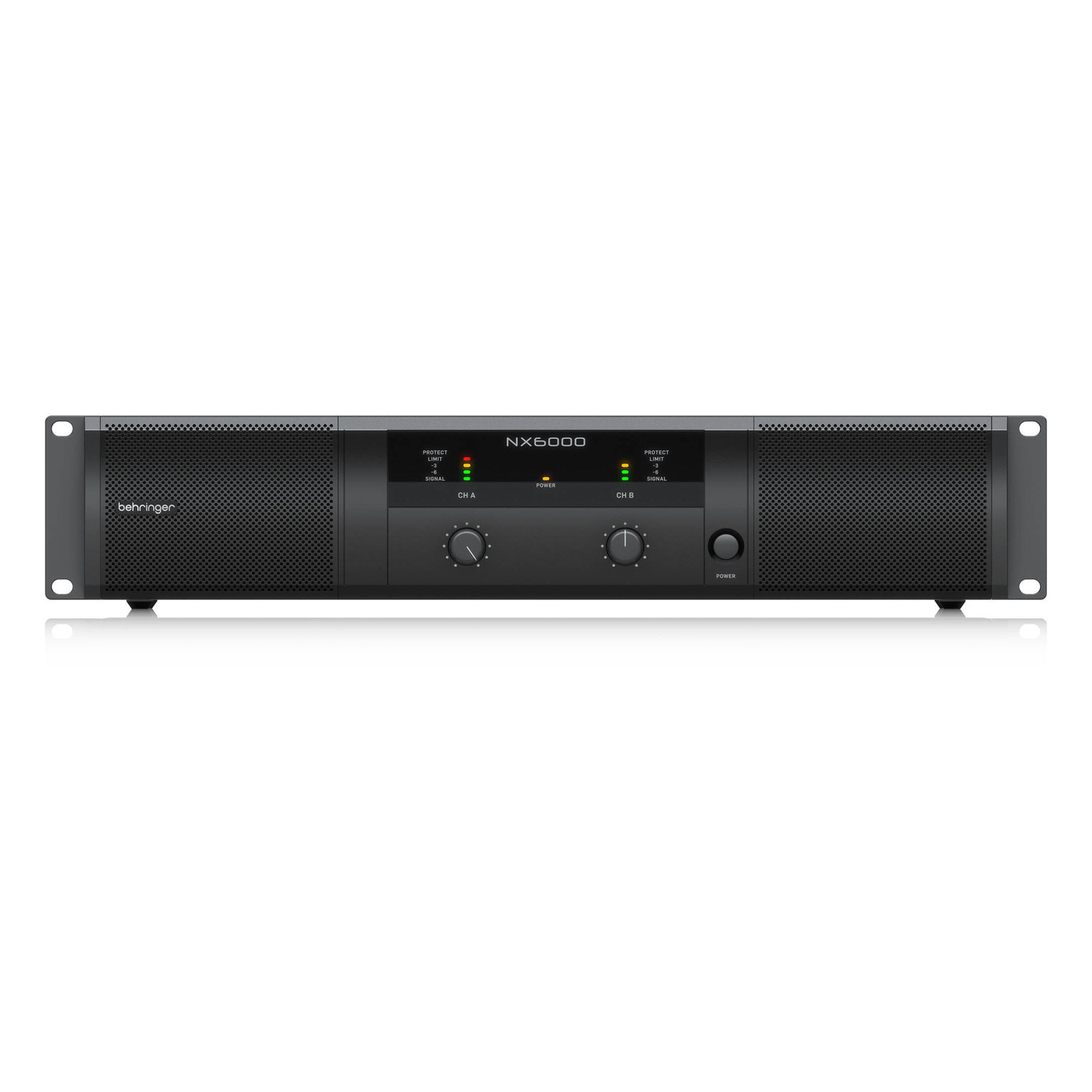 The Behringer NX6000 power amplifier can be used in almost any installation, thanks to its innovative Class D amplification technology, built-in DSP/24-bit/96 kHz converters, and lightweight design, plus all the conveniences that a professional sound engineer may require.
