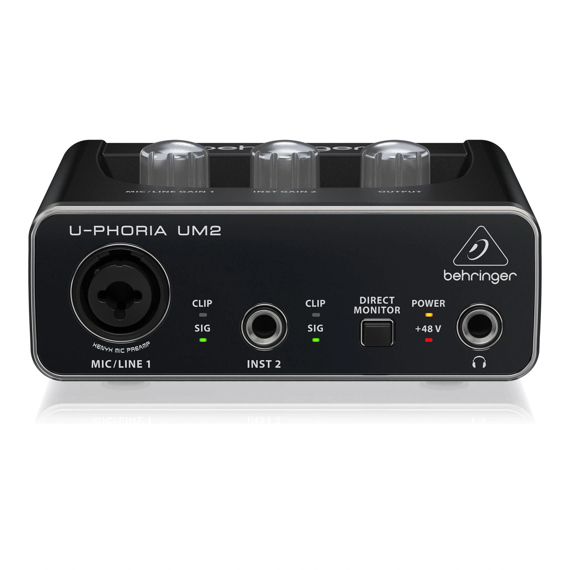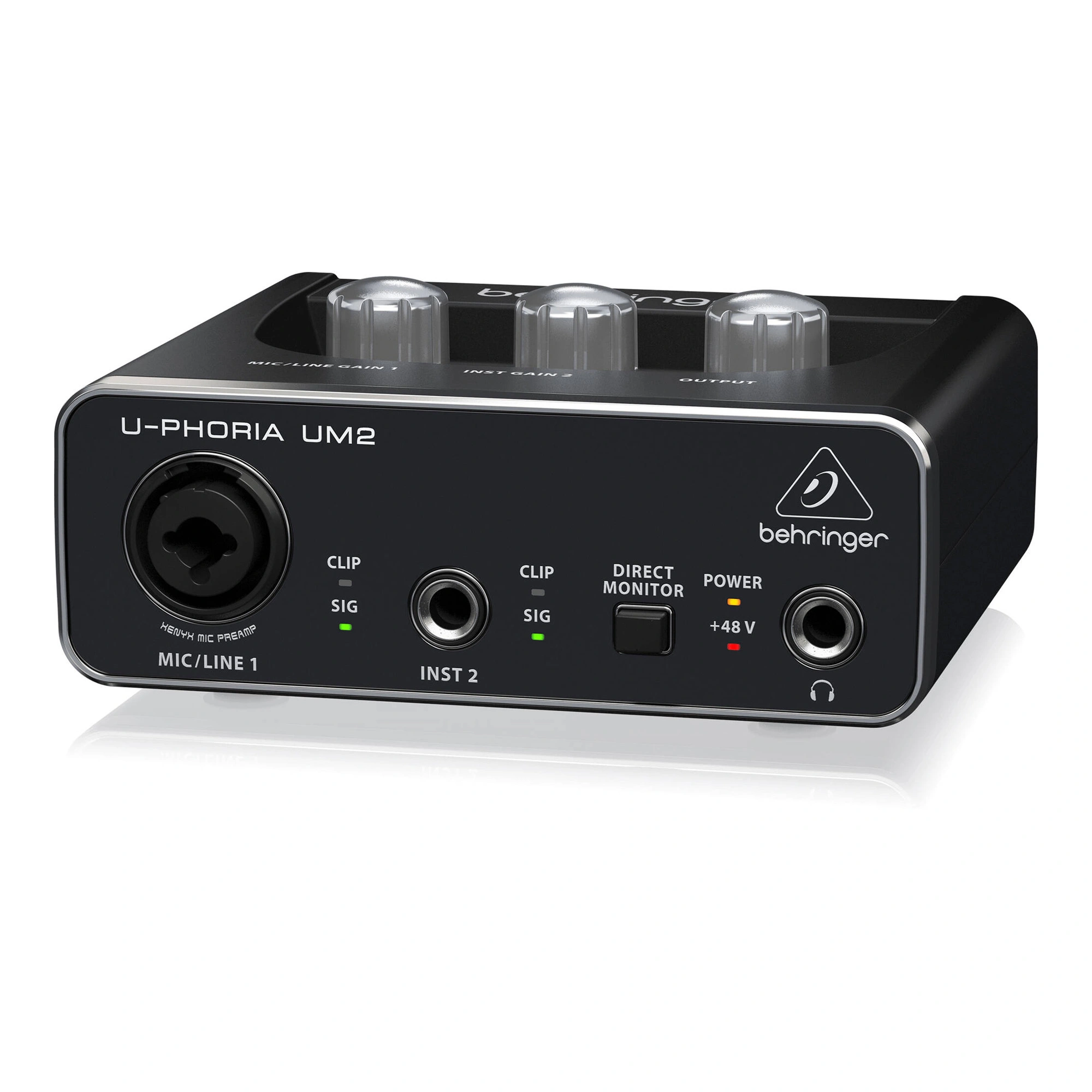 The studio-grade XENYX microphone preamplifiers used in the UM2 have been highly praised by sound engineers worldwide for their immense power reserves and low noise levels. These state-of-the-art microphone preamplifiers represent a significant step forward in audio technology and easily outperform expensive standalone microphone preamplifiers. XENYX preamplifiers have an impressive 100 dB dynamic range and a bandwidth from 10 Hz to well over 30 kHz.