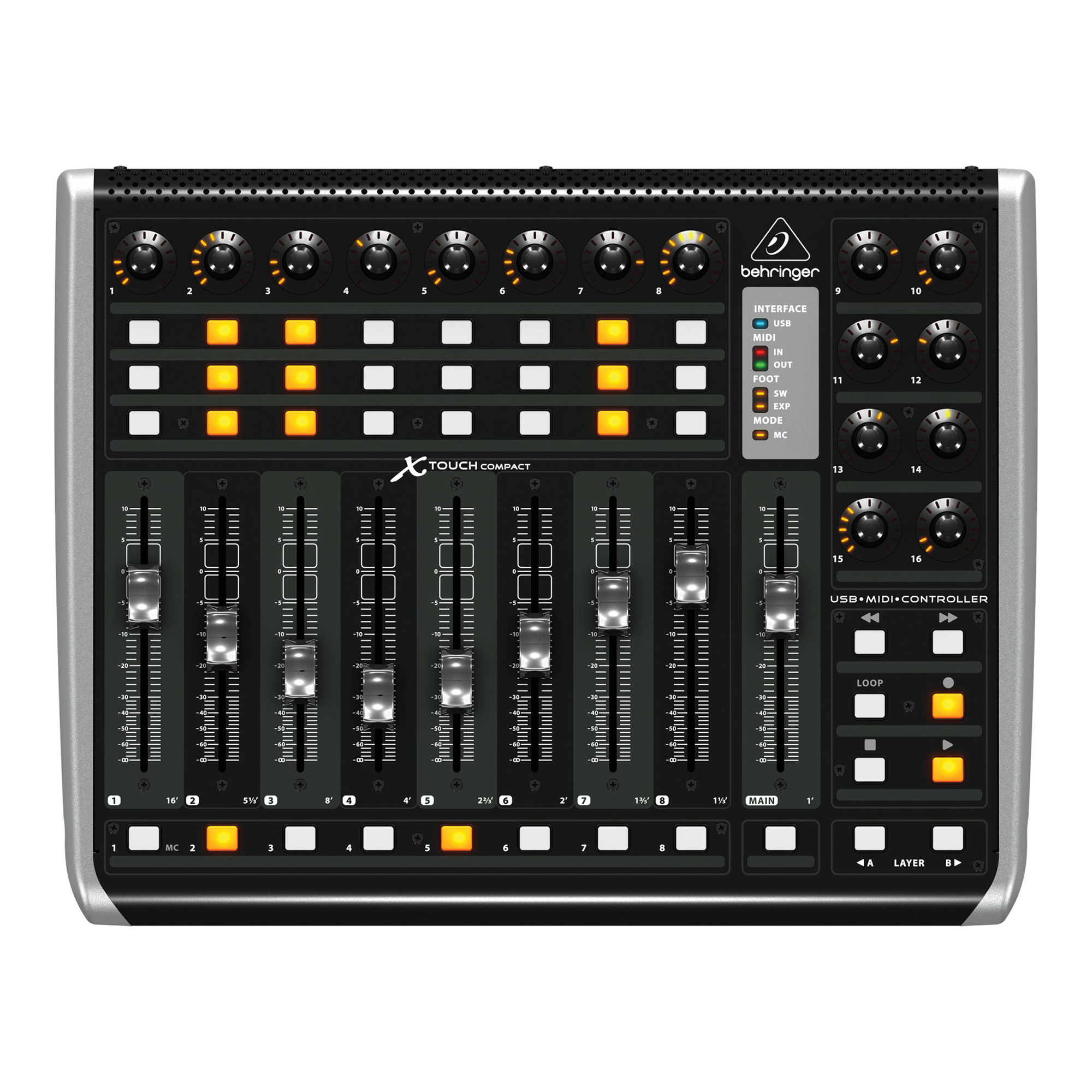 Behringer X-Touch Compact is a versatile MIDI controller designed for working with DAWs, lighting control systems, and external audio equipment. The model features nine motorized 100mm faders with touch-sensitive knobs. The Dual-Layer mode allows for quick switching between DAW and instrument control presets.