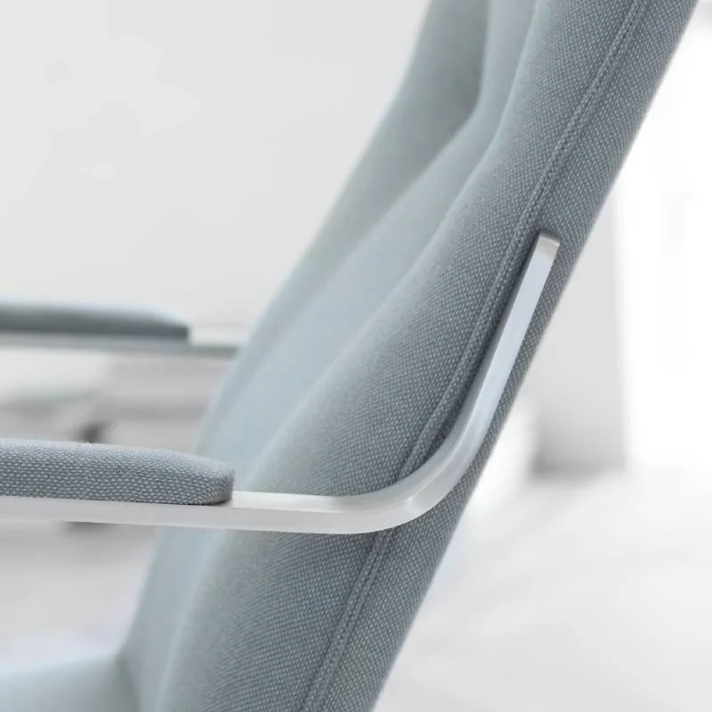 A beautiful and simple interplay in design and high seating comfort. Note the hand-polished aluminum armrests that come in matte, glossy or black. Special colors can be made as desired. The installation is of course done without the use of visible screws. Available in many fabric variants and in many leather colors. The replaceable buttons in the back can be delivered in the desired color, and can be changed to eg yellow for Easter, green for summer, red for Christmas etc etc. Ergonomics are ensured by adapted seat heights and back cushions.