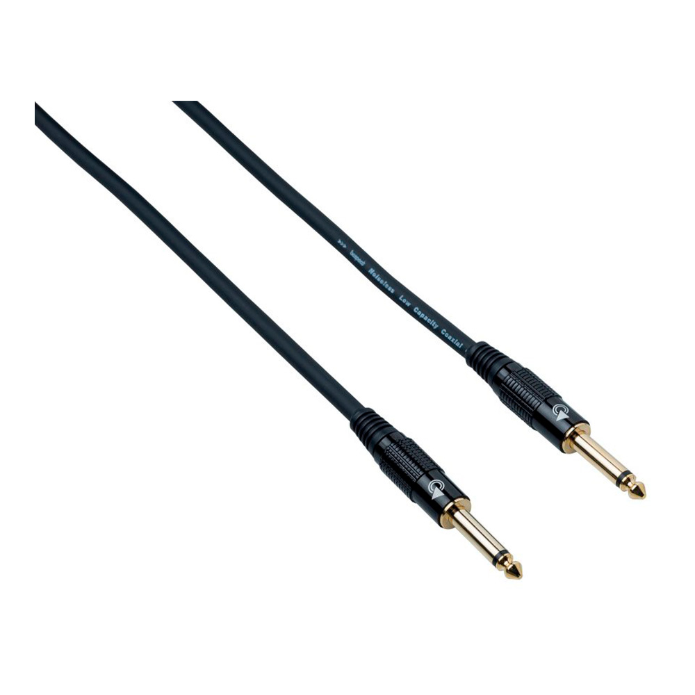 Bespeco EAJJ900 is an instrument cable from the Eagle Pro series, designed for use with musical instruments. It features 1/4" Jack TS connectors with gold-plated connectors. The shielded CVP100BK cable is made of oxygen-free copper with a cross-section of 0.25 mm2 and is equipped with a durable outer covering made of PVC and vulcanized silicone, providing good flexibility.