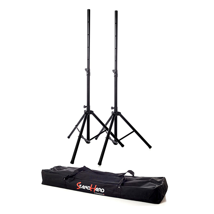 Bespeco SH80NP is a set of 2 pneumatic stands for mounting acoustic systems. The main construction elements are made of steel with epoxy coating. Durable nylon is used for connections. The diameter of the tubes on which the speakers are mounted is 35 mm. The height of the stands can be adjusted in the range from 118 to 177 cm using an automatic button and a locking handle, which provides additional installation reliability at the chosen level. Thanks to the pneumatic system, the height adjustment is smooth, protecting the installed equipment from possible damage due to sudden lowering. The maximum load weight for one stand is 45 kg. In addition to the stands themselves, the set also includes a durable nylon case with reinforced handles. The weight of 2 stands is 8.5 kg.
