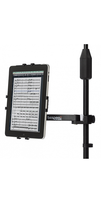 Bespeco TAB100 - a mount designed to be attached to a microphone stand. Suitable for any tablets ranging in size from 8” to 10”. Adjustable to any position. Features a special soft coating to protect the tablet's body.