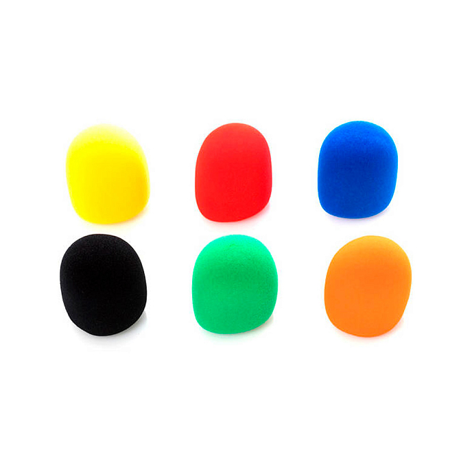 The set of universal windshields Vesreso WSO6C includes six foam windshields for microphones in different colors: red, orange, yellow, green, blue, and black. The wind protection Besreso WS06C allows marking microphones to simplify the work of the sound engineer.