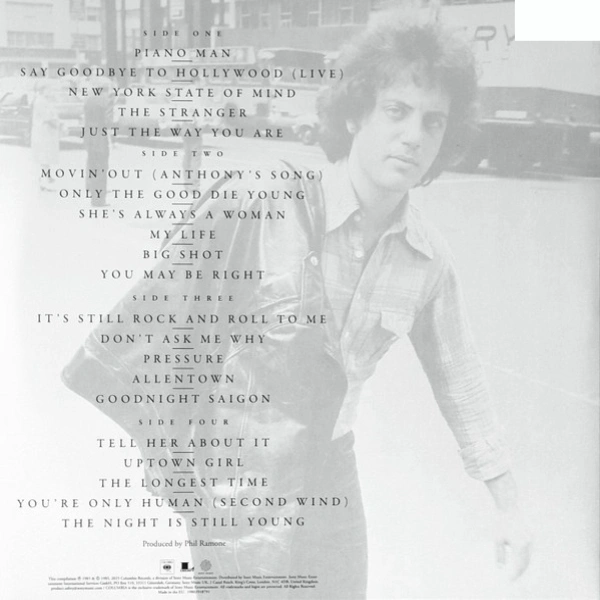 The album is a immersive journey through the history of American music: from the early "Piano Man," which became Joel's signature tune, to the emotional "Goodnight Saigon," powerful urban anthems like "New York State of Mind" and "Allentown," and the energetic hits "Uptown Girl" and "It's Still Rock and Roll to Me." Each composition is a fragment of an era, a reflection of the urban rhythms, personal experiences, and Joel's incredible musical flair. This collection allows you to experience the artist's transformation: from melodious stories at the piano to a multi-million-selling hitmaker and a full-fledged icon of the American pop scene.