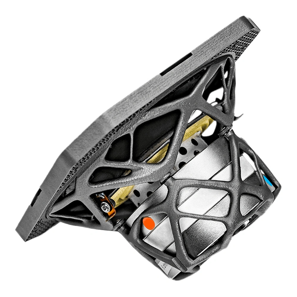 This basket is not just a placeholder for the membrane. The energy generated by the membrane is also held by the structure behind it. The goal was therefore to eliminate the noise of the basket by designing a basket with maximum stiffness. Studies were conducted using computer-optimized finite element designs, resulting in a topology-optimized basket made of the exclusive material zirconium.