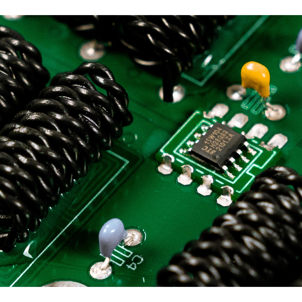 The active square Tesla coils are embedded in our circuitry boards – one coil on the top and the counter coil on the rear side. The principle is exactly the same as the active Tesla coil and thus a great ability to eliminate noise than the passive Tesla coils.